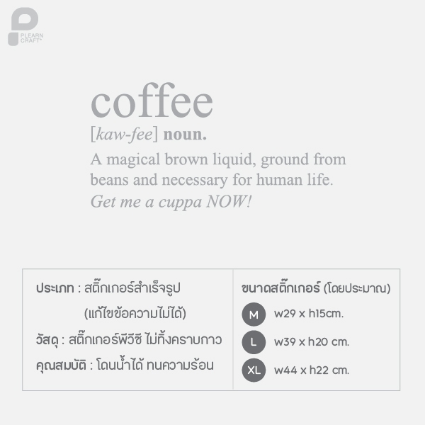 BNCF012 Coffee noun A magical brown liquid สติ๊กเกอร์ Coffee noun A magical brown liquid ตกแต่งร้านกาแฟ ตกแต่งคาเฟ่