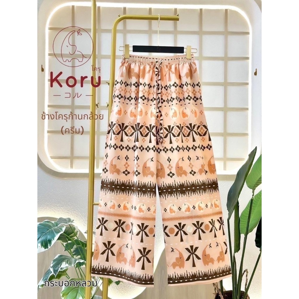 KORU กางเกงขายาวทรงหลวม ลายก้านกล้วย