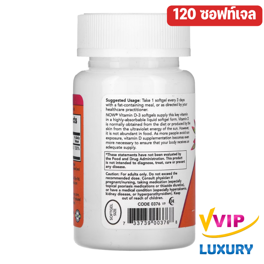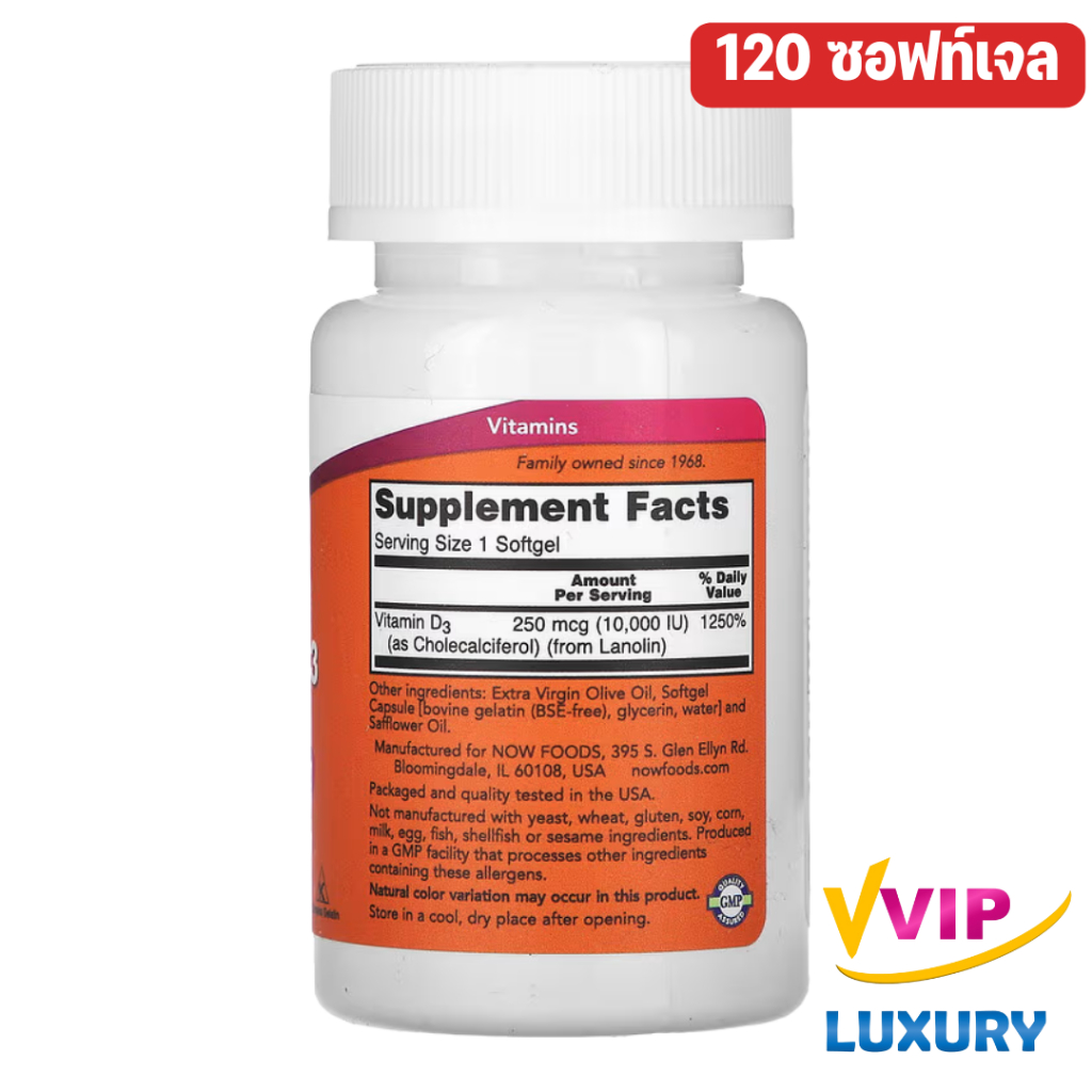 วิตามินดีสาม NOW Vitamin D3 High Potency 10,000 IU 120 / 240 softgels