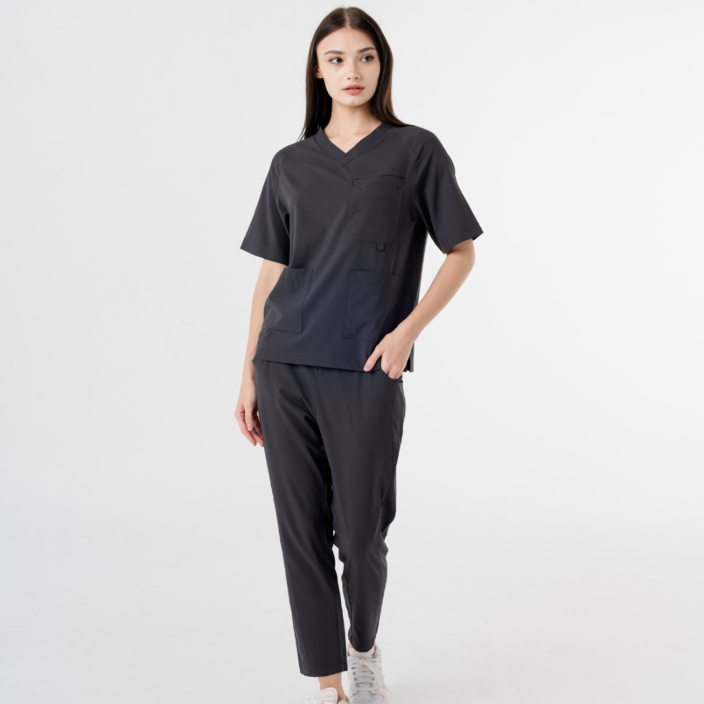 (ขายแยกชิ้น) ชุดคอวีสีดำ ชุดสครับเเพทย์ สัตวแพทย์ ไม่ติดขน