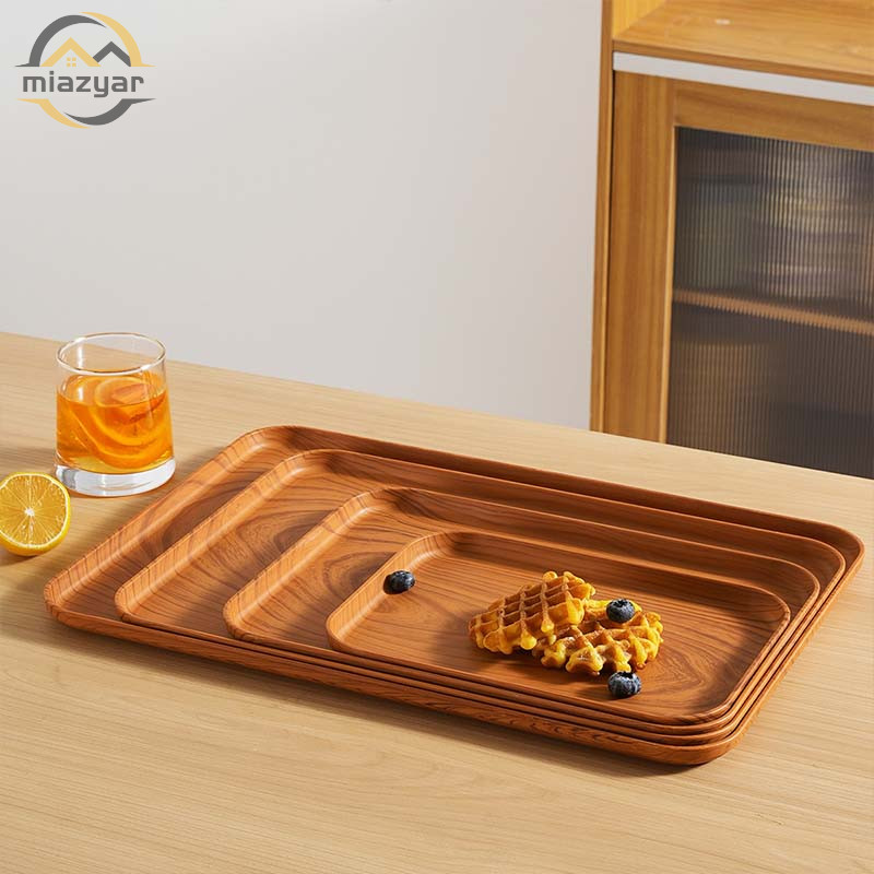 😍COD😍ถาดพลาสติก ทรงสี่เหลี่ยม ลายไม้เทียม สไตล์ญี่ปุ่น ของใช้ในครัวเรือน สําหรับใส่ชา