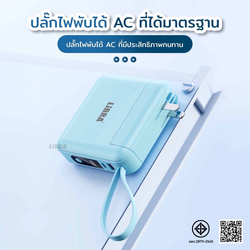 LiBRA Q49 PowerBank 30000mAh พาวเวอร์แบงค์ Fast Charge PD22.5W ชาร์จเร็ว มีสายชาร์จและขาปลั๊กในตัว หน้าจอ LED