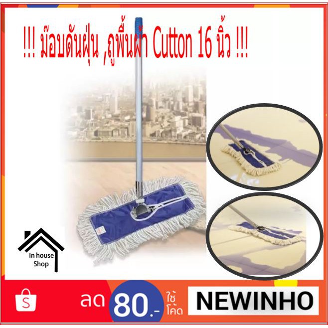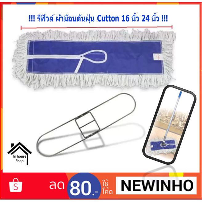 ไม้ม็อบดันฝุ่น ด้ามสแตนเลส ขนาด 16 นิ้ว (สีฟ้า/สีขาว)+ อะไหล่ผ้าม็อบดันฝุ่น ขนาด 16 นิ้ว 24 นิ้ว
