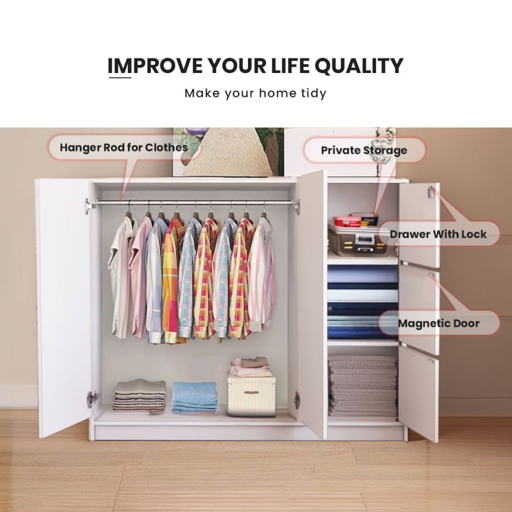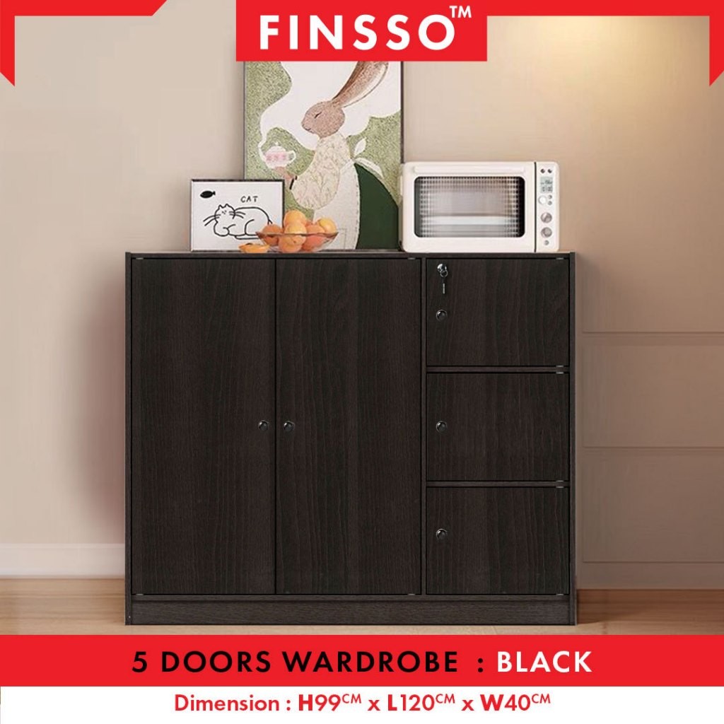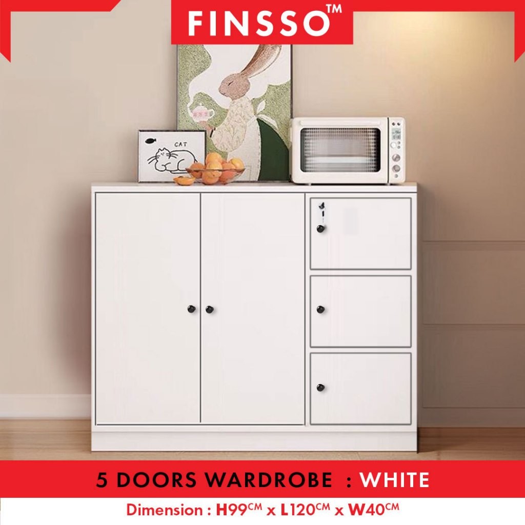 พร้อมส่ง!! Finsso: ตู้เสื้อผ้าเด็ก ตู้ไม้เก็บเสื้อผ้าเด็ก 5 บานประตู พร้อมราวแขวน Children Cabinet
