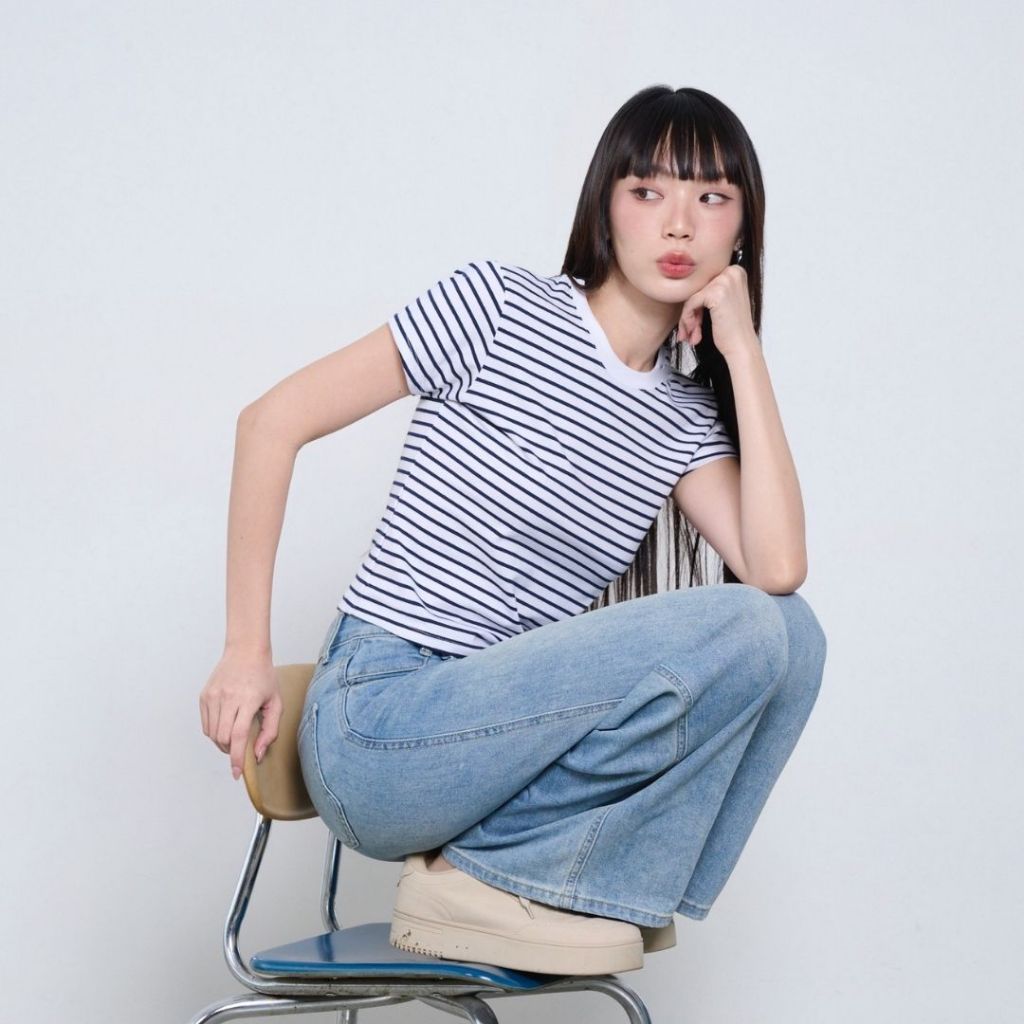 MEET ME - Top 0002 I BASIC JOYS STRIPES เสื้อครอปลายทาง