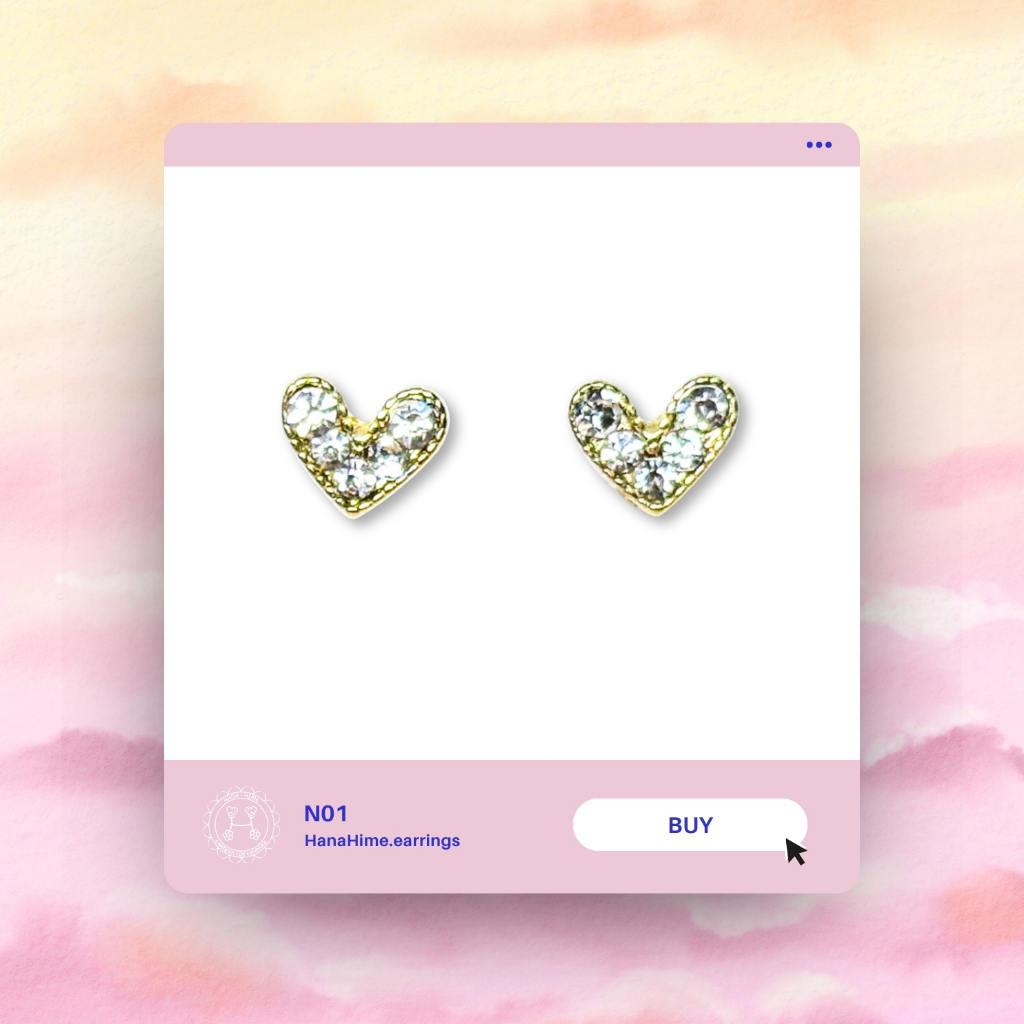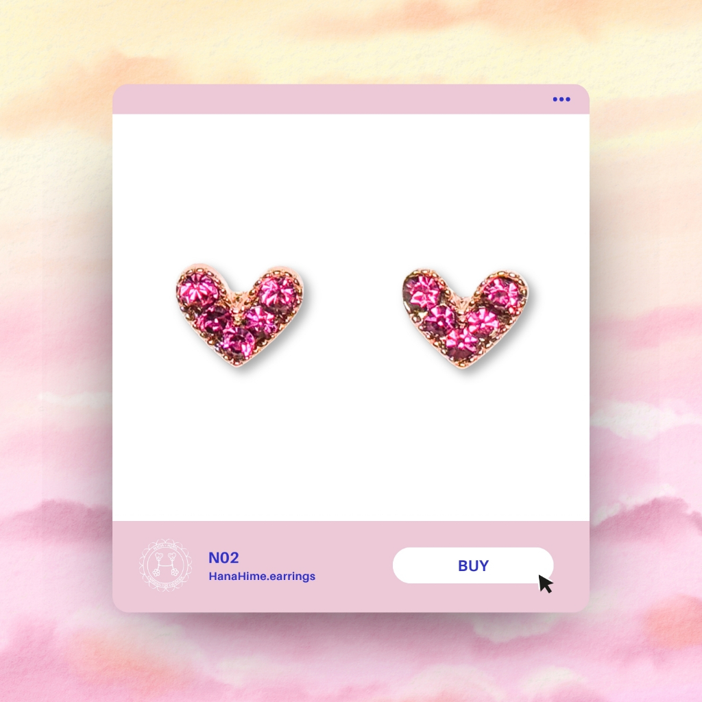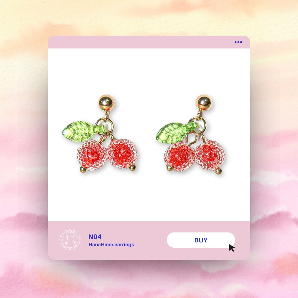 HanaHime.Earrings - Cherry Heart ต่างหูก้านเงิน ต่างหูเงิน s925 ต่างหูแพ้ง่ายใสได้