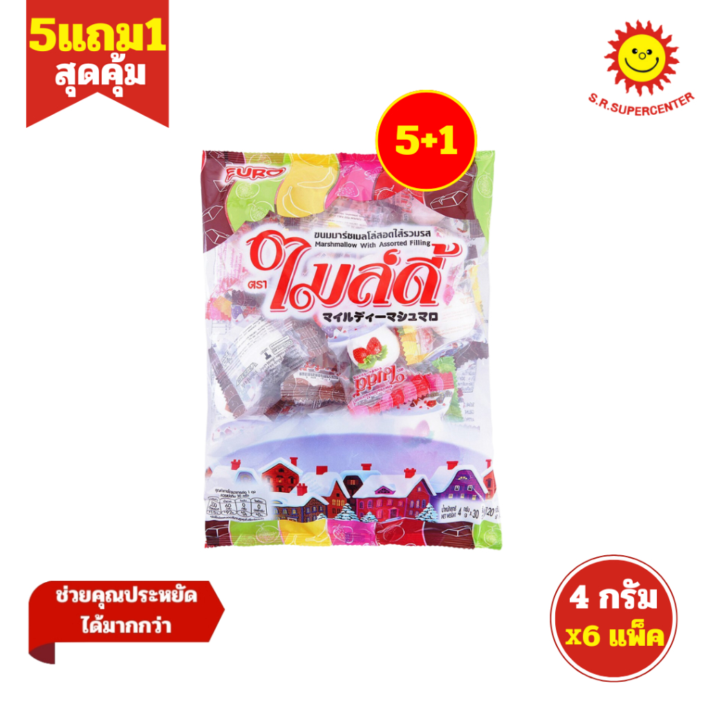 [ 5แถม1 ] ไมล์ดี้ ขนมมาร์ชเมลโลว์สอดไส้ ขนาดชิ้น 4ก. แพ็ค 30 ชิ้น 120ก. คละรส (แพ็ค6)
