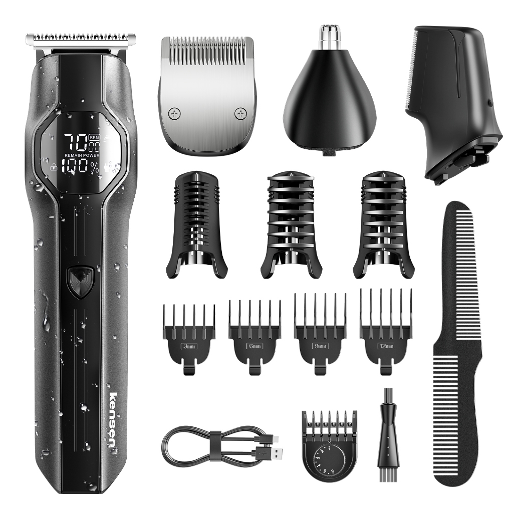Kensen เครื่องตัดผม ไร้สายมืออาชีพ เครื่องโกนหนวดไฟฟ้า เครื่องตัดขนมัลติฟังก์ชั่น 4 In 1 เครื่องโกนหนวดไฟฟ้า ขนจมูก เครา Eyebrow Ear Shaver