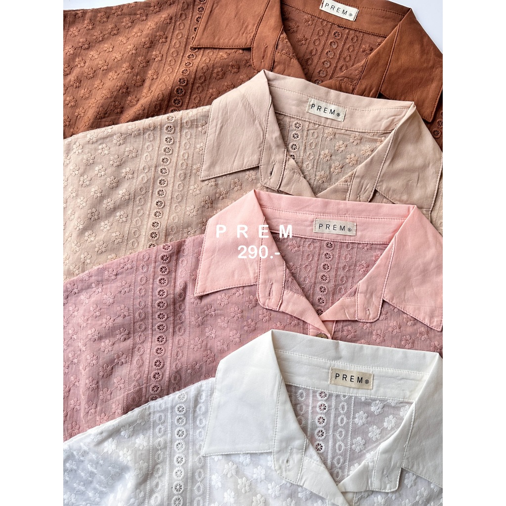 🥐เสื้ออมยิ้ม ลายลูกไม้ คอปก แขนสั้น รูดเอว #335🥐