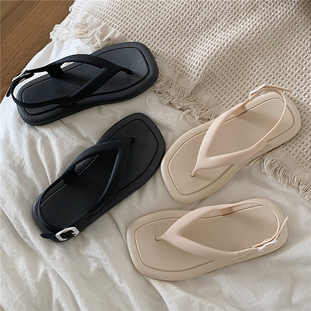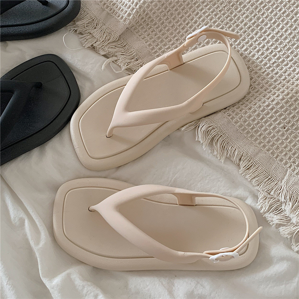 ฉี่เตียว ผู้หญิงฤดูร้อนแฟชั่นเฉพาะรองเท้าแตะพลิกนิ้วเท้าสีทึบเรียบง่ายวันหยุดชายทะเล