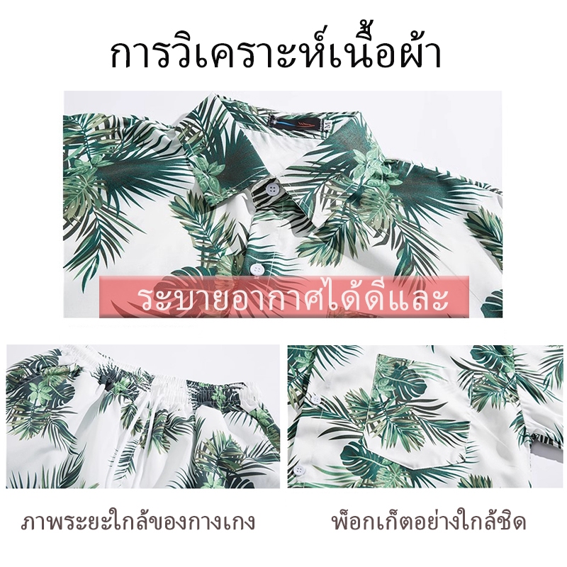 เสื้อฮาวาย ผู้ชาย ชุดเซ็ต ทรงหลวม ลายต้นมะพร้าว ผ้าบาง ใส่สบาย แฟชั่นฤดูร้อน เหมาะกับเดินชายหาด างและระบายอากาศได้ดี