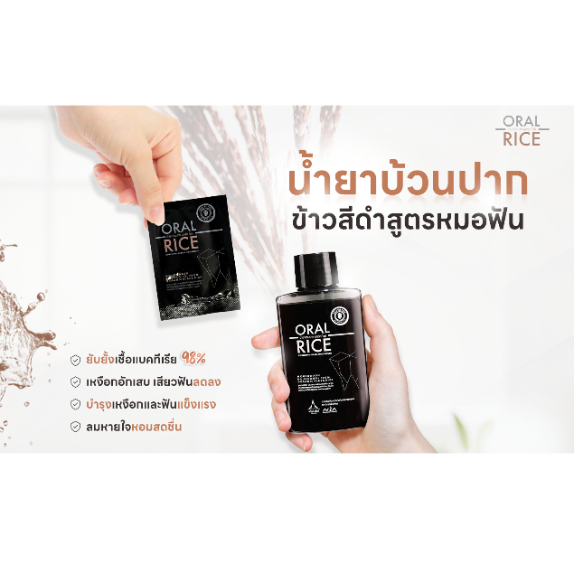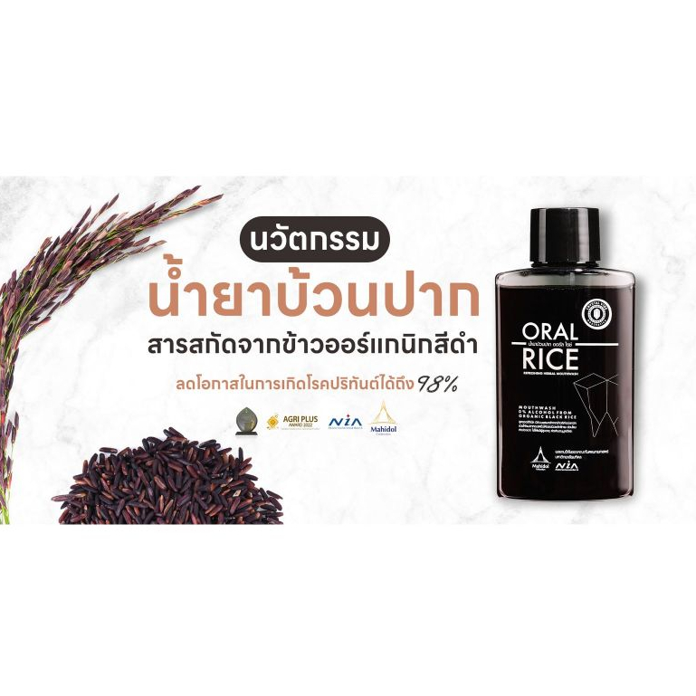 Oral Rice Mouth Wash มี 2 ขนาด 100 ml. และ 250 ml. น้ำยาบ้วนปาก ข้าวสีดำออแกนิค โดยทันตแพทย์มหิดล
