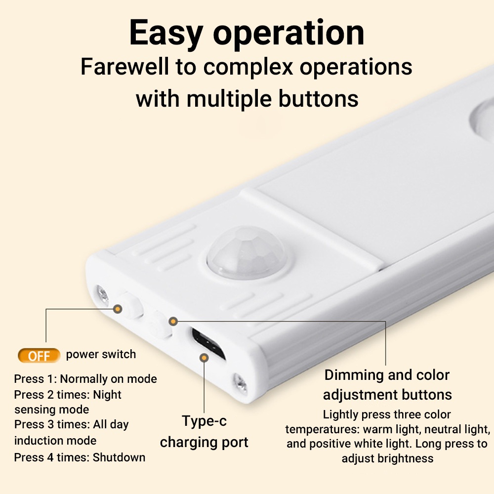 โคมไฟ LED รูปตาแมว ปรับได้ 3 สี ชาร์จ USB TYPE-C 20 30 40 50 60 ซม. สําหรับตู้เสื้อผ้า ห้องครัว