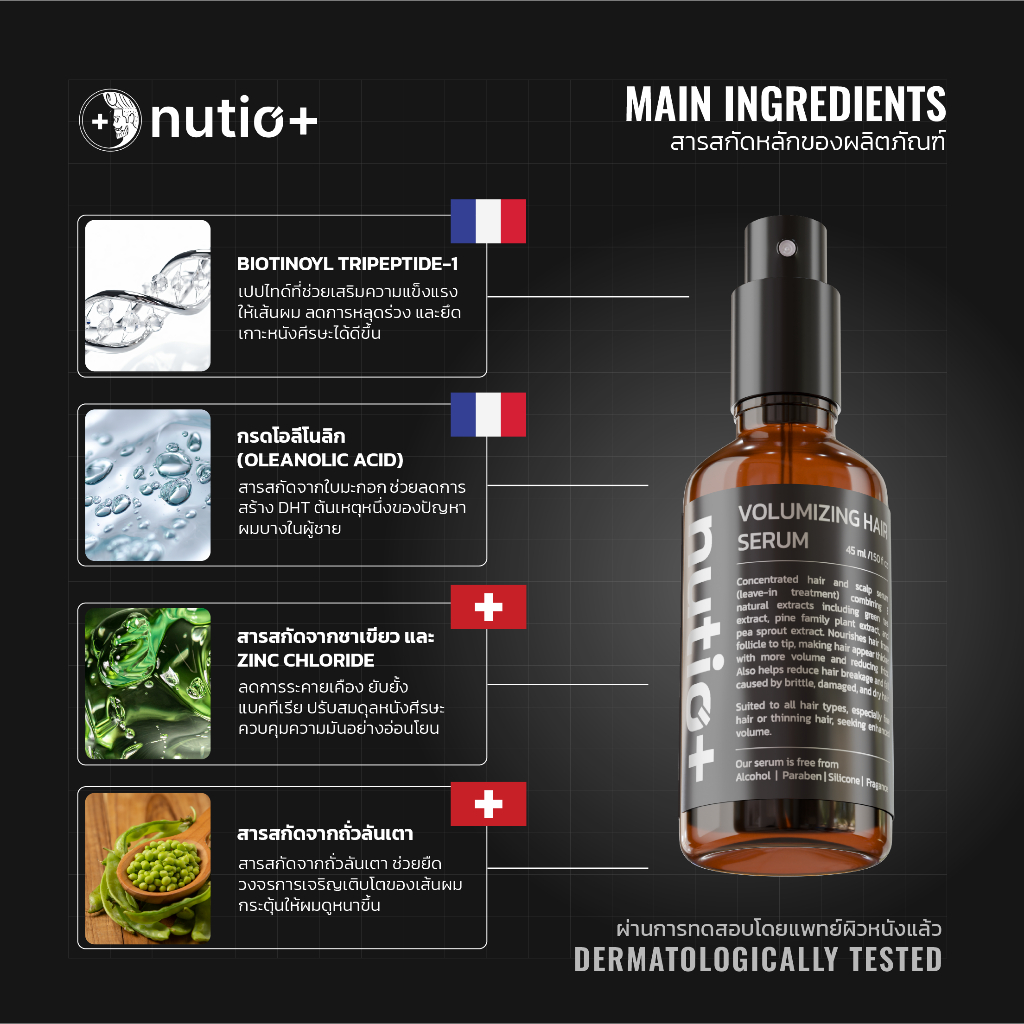 Nutio+ Volumizing Hair Serum เซรั่มลดผมร่วง เพิ่มวอลลุ่ม ผมเส้นเล็ก ผมบาง หนังศีรษะแข็งแรง