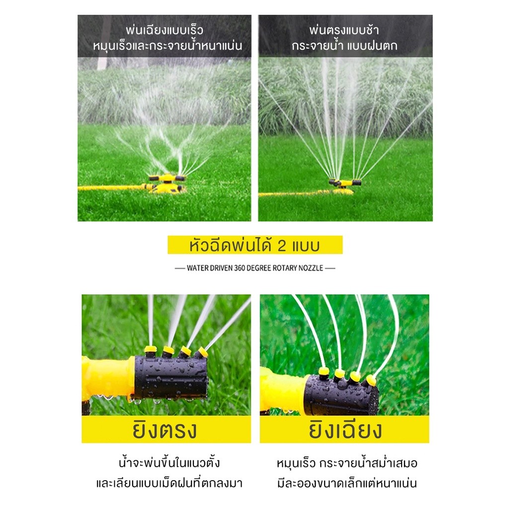 สปริงเกอร์ สปริงเกอร์รดน้ำ หัวฉีดสปริงเกอร์ รดน้ำรอบทิศ 360 องศา โหมดสเปรย์หลายแบบ 2หัวสำหรับใส่สายยาง Sprinkler