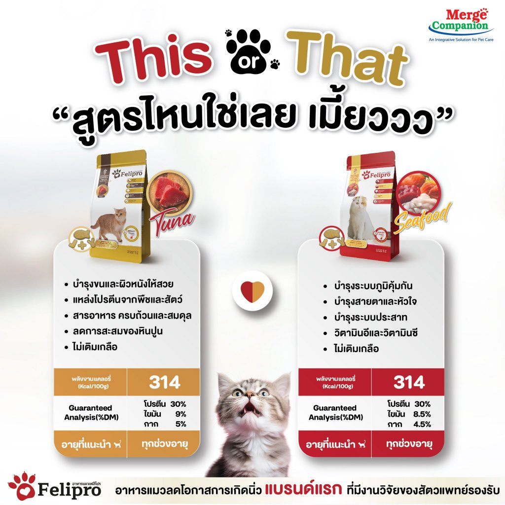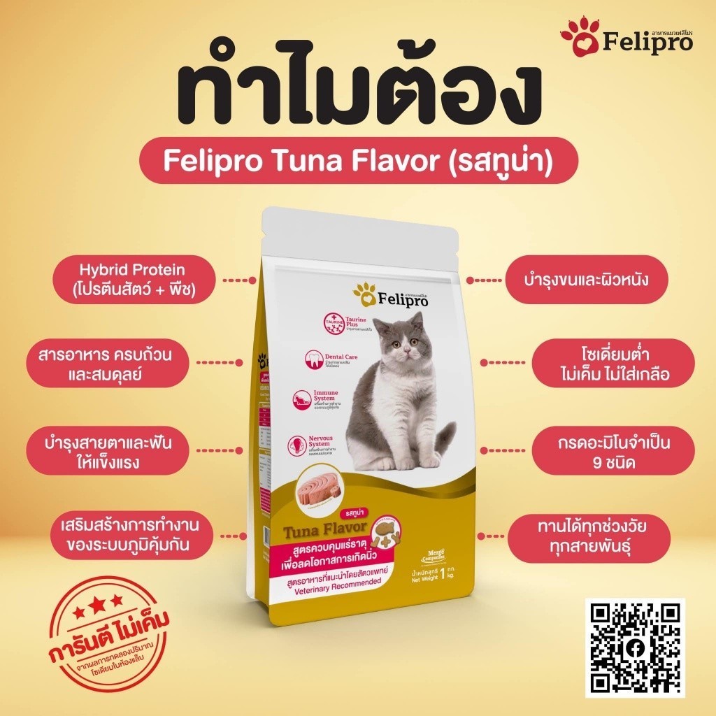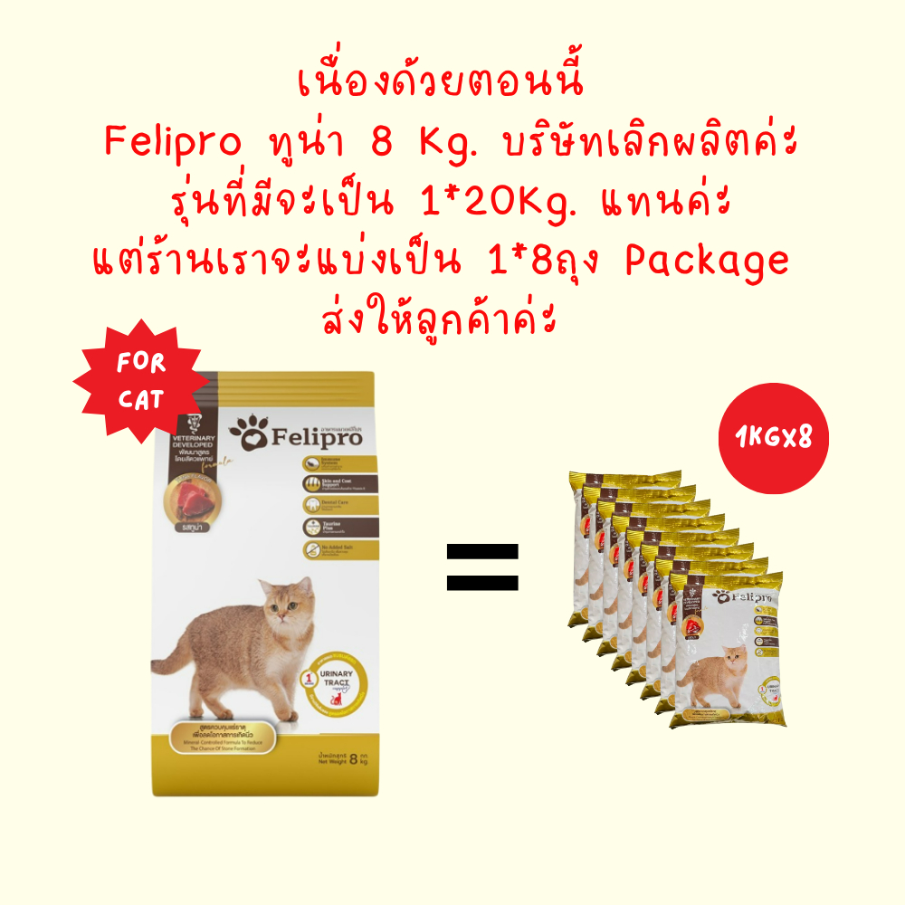 Felipro เฟลิโปร อาหารแมว ป้องกันนิ่ว บำรุงขนสวย มี2สูตร ทูน่าและซีฟู๊ด ขนาด 8 กิโลกรัม