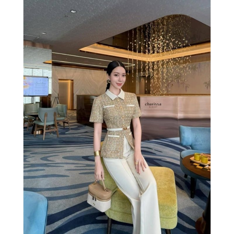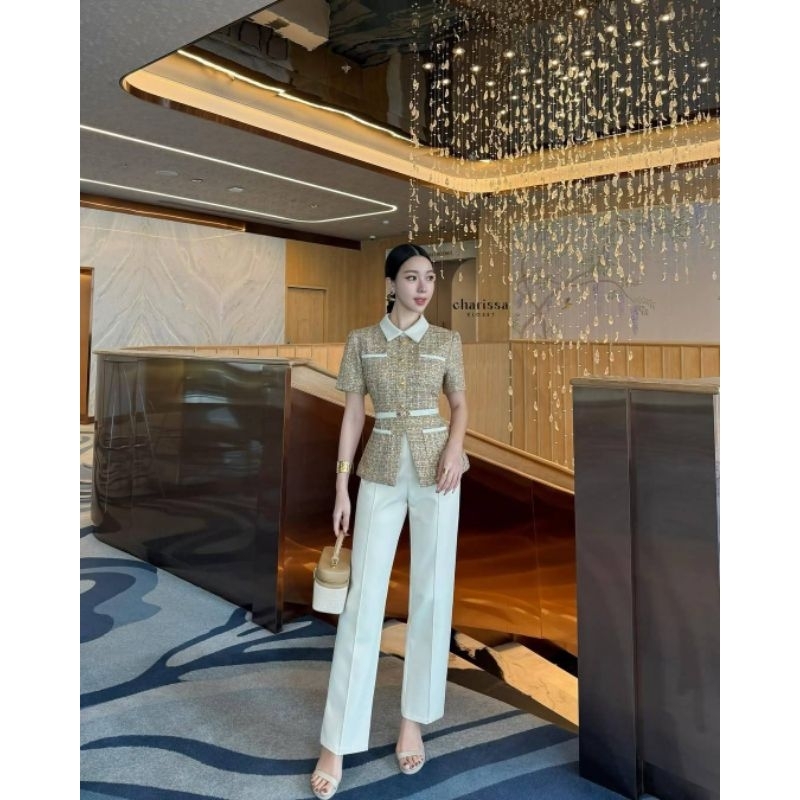 Charissa พร้อมส่ง / ชุดเซ็ตเสื้อผ้าทวิต+กางเกงขายาว