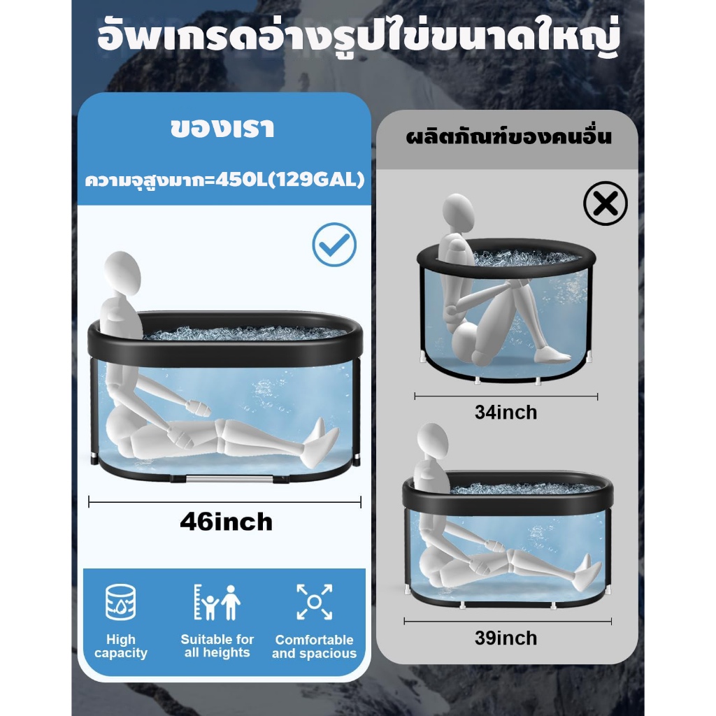 อ่างแช่น้ำเเข็ง อ่าง อ่างแช่ตัวพกพาสะดวก Soaking tub. Ice bath เหมาะสำหรับนักกีฬาพกพาสะดวกพับ และใช้งานได้ทั้งใน และนอกบ