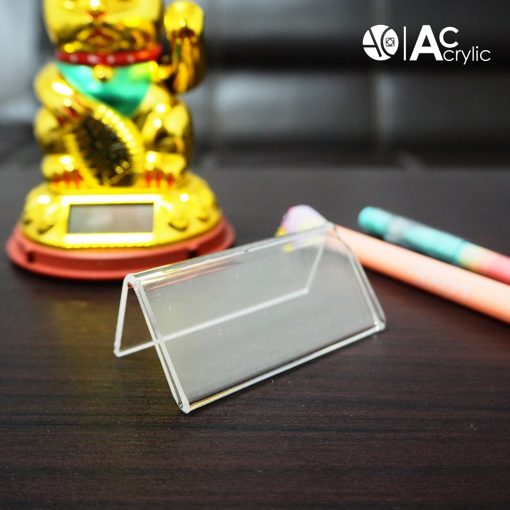 ป้ายอะคริลิคตั้งโต๊ะ 6.5x2.5cm. อะคริลิคใส ทรง V ขนาดเล็ก (6.5V)