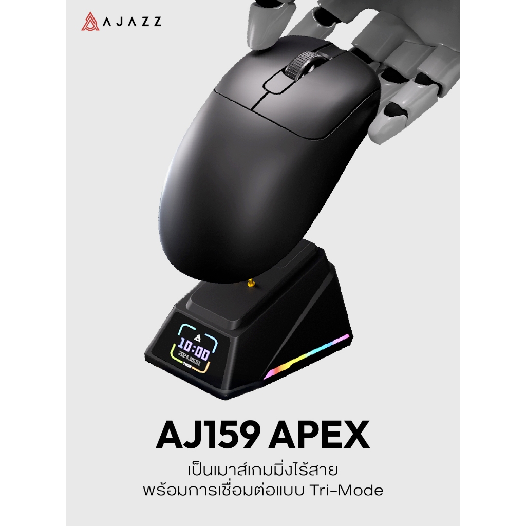 เมาส์เกมมิ่งพร้อมแท่นชาร์จ Ajazz AJ159 Apex 8K Tri-Mod Wireless Magnetic With Charginig Mouse รับประกันสินค้า 1 ปี