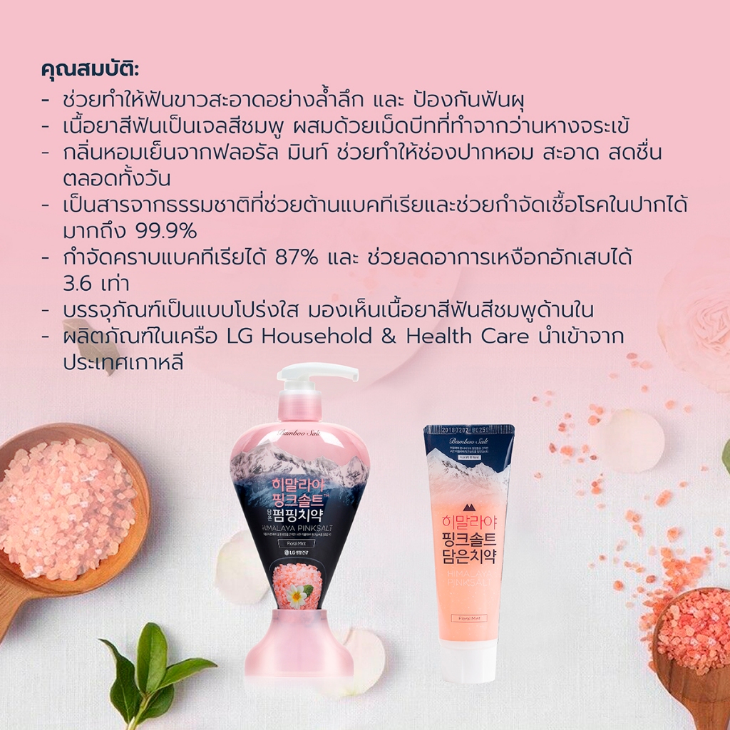 (แพ็ค3) ยาสีฟันฮิมาลายาพิงค์ซอลท์ ฟลอรัล มินท์ แบบปั้ม Himalaya Pinksalt Pumping Toothpaste Floral Mint