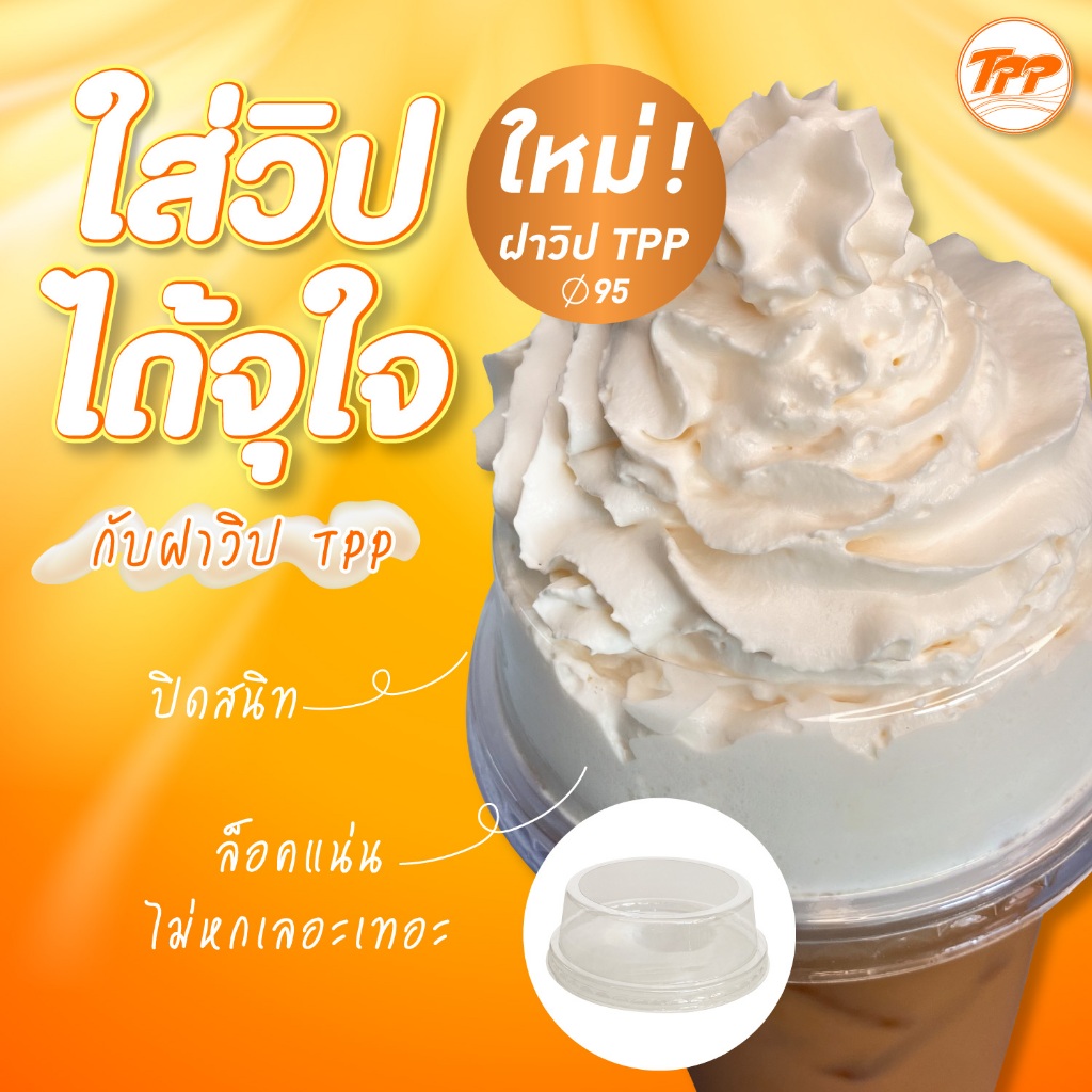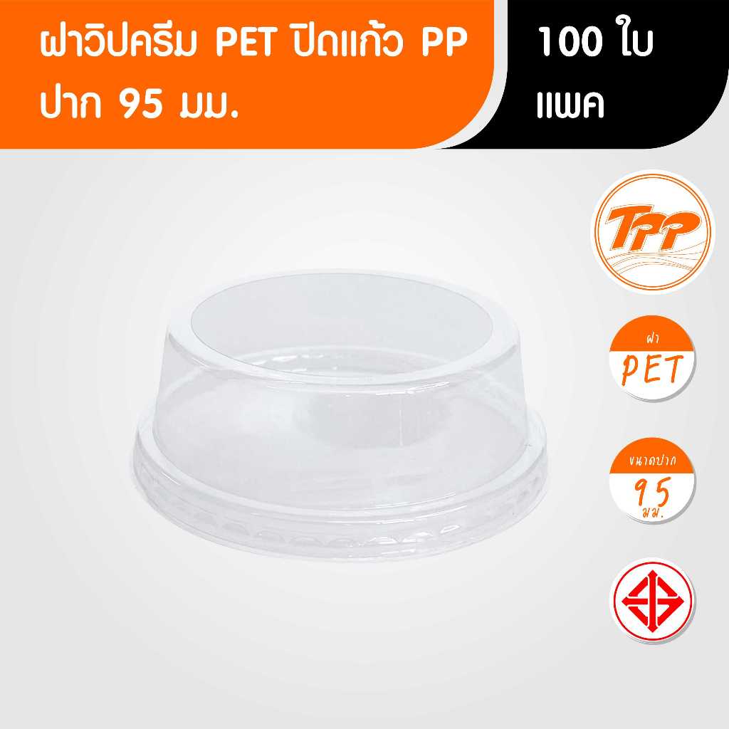 TPP (แพ็ก) ฝาวิปครีม ปาก 95 มม PET 100 ใบ สำหรับแก้วพลาสติก