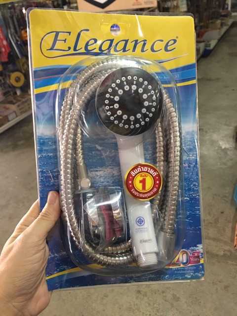 ฝักบัวอาบน้ำ Elegance จัสมิน A-26B พร้อมขาฝักบัว พร้อมสายฝักบัวแบบสแตนเลส ผลิตจากวัสดุ ABS ทนแรงดันน้ำได้สูง สีขาว