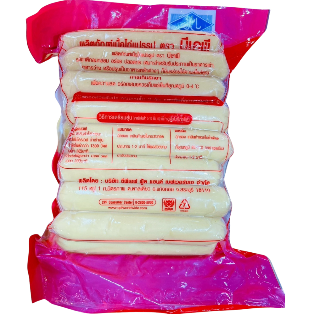 BKP ไส้กรอกไก่สโมคกี้ไบท์ 1 kg/26ชิ้น อร่อย หอมกลิ่นรมควัน เนื้อไส้กรอกนุ่มเด้ง มีฮาลาล ผลิตโดยCPF