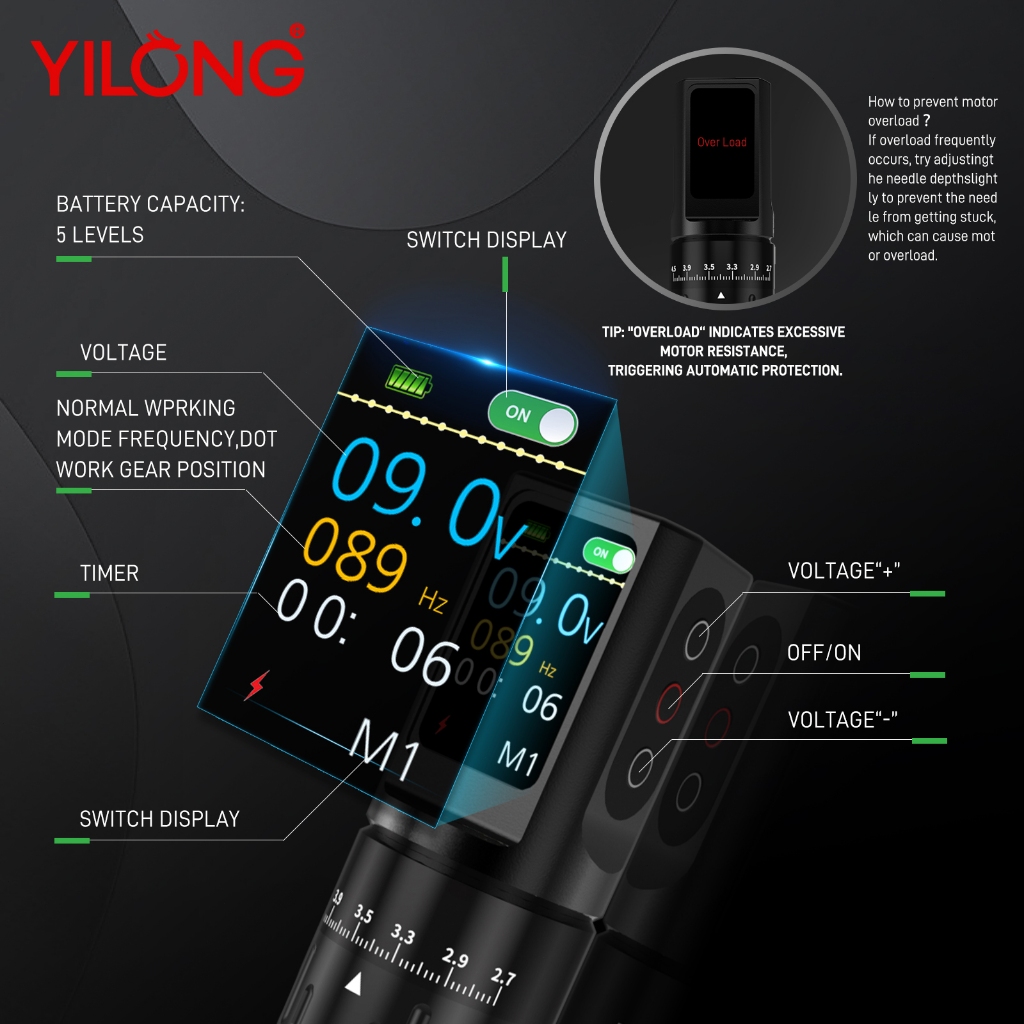 ยี่หลง มืออาชีพไร้สายปากกาเครื่องสักชุดปรับจังหวะ2.7มิลลิเมตร-4.5มิลลิเมตรสักปากกาด้วยตลับเข็มสําหรับร่างกายศิลปะ
