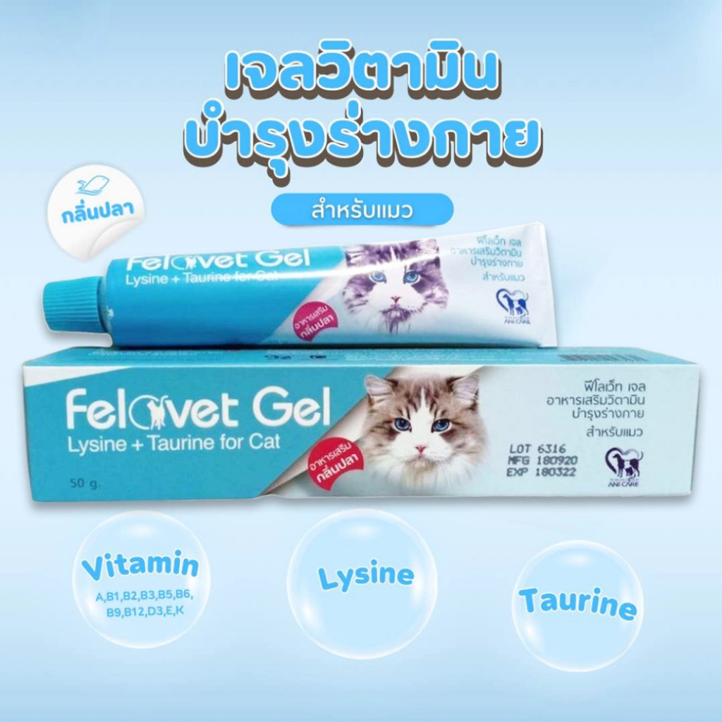 Felovet gel อาหารเสริมวิตามินบำรุงร่างกาย ฟื้นฟูร่างกาย กระตุ้นให้อยากอาหาร สำหรับแมว ขนาด 50g.