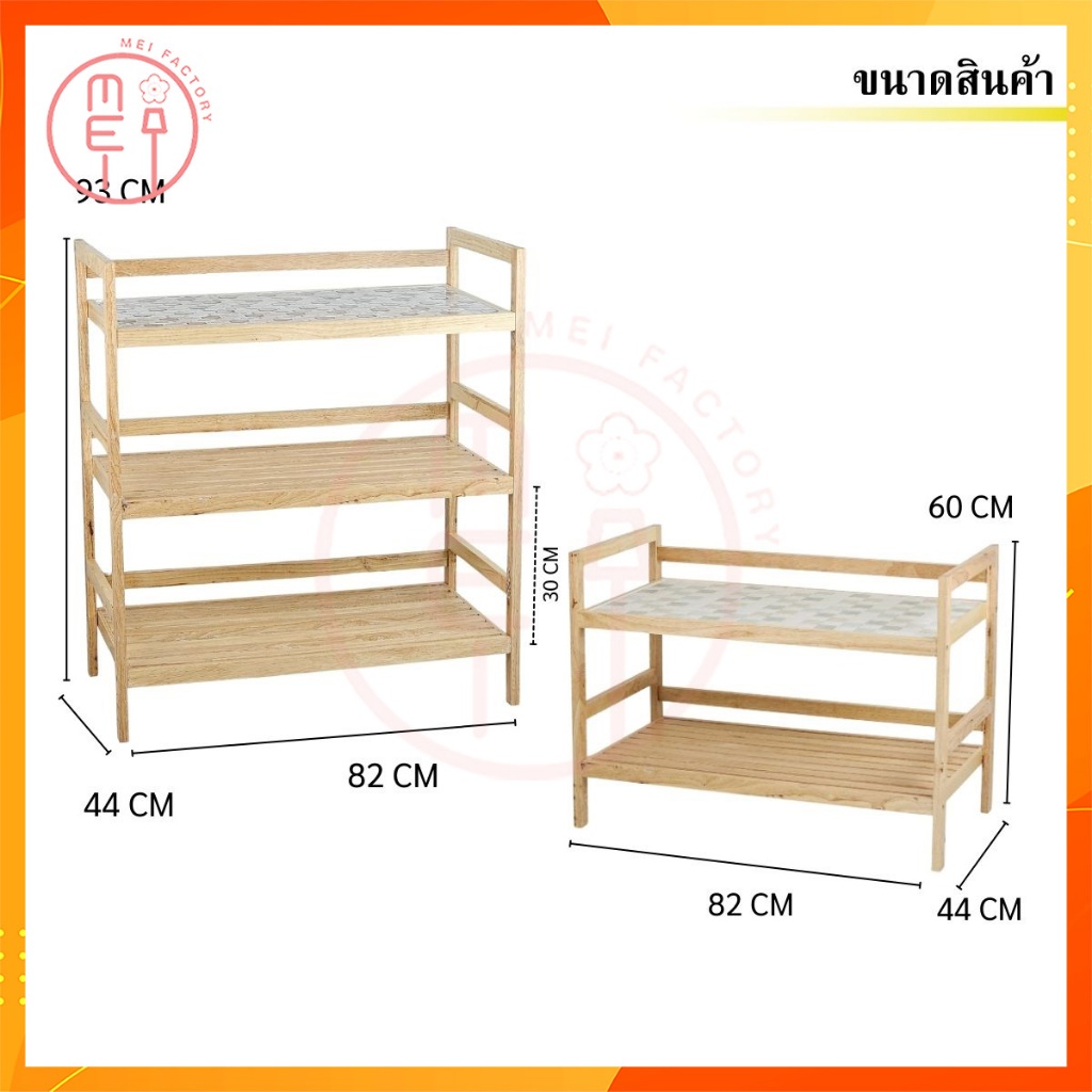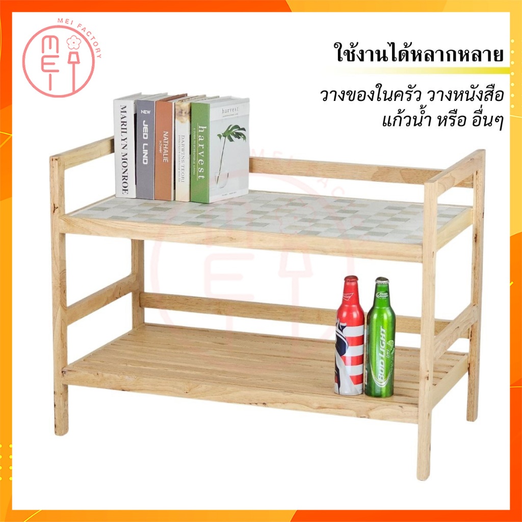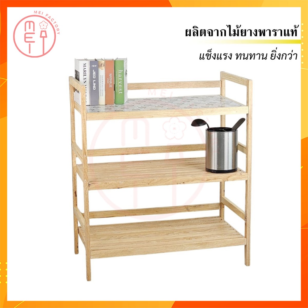 MEI LP4080 ชั้นกระเบื้องไม้ยางพารา ชั้นวางอุปกรณ์ วางเครื่องครัว ซี่ไม้ยางพาราอเนกประสงค์ ชั้นกระเบื้อง 1 ชั้น