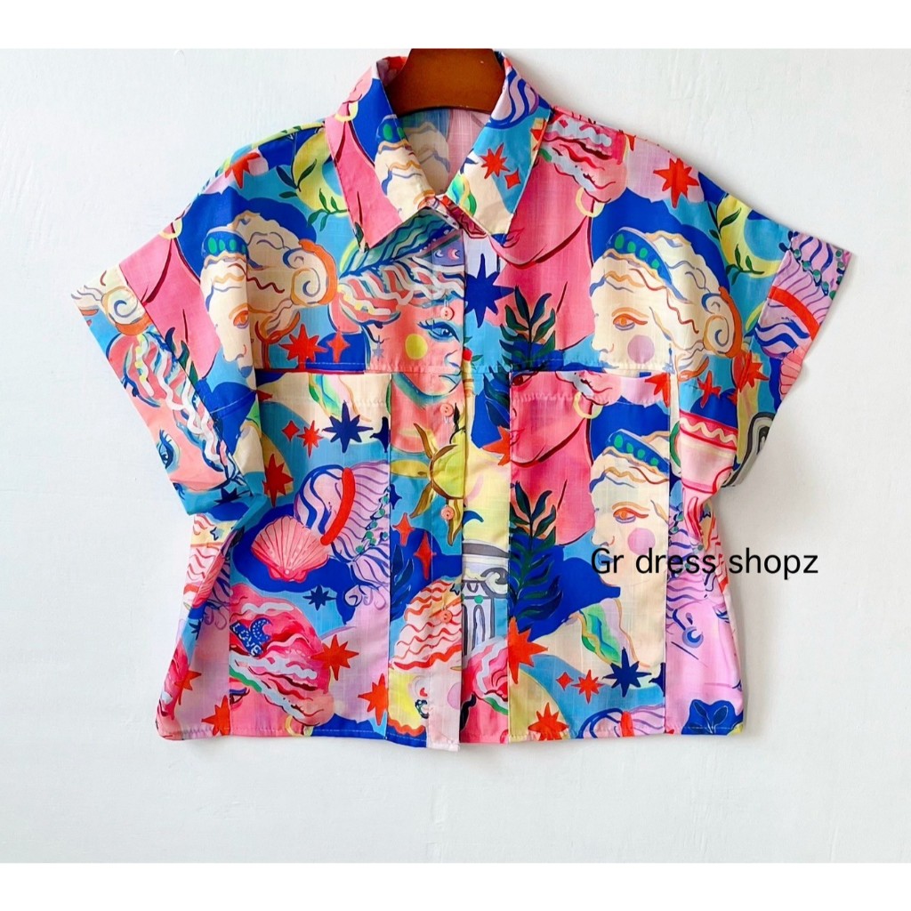 ป้าย Princess เสื้อเชิ้ตแขนสั้นผ้าคอตตตอนแต่งกระเป๋าใหญ่ หน้าผ้า 42 นิ้ว ยาว 19 นิ้ว