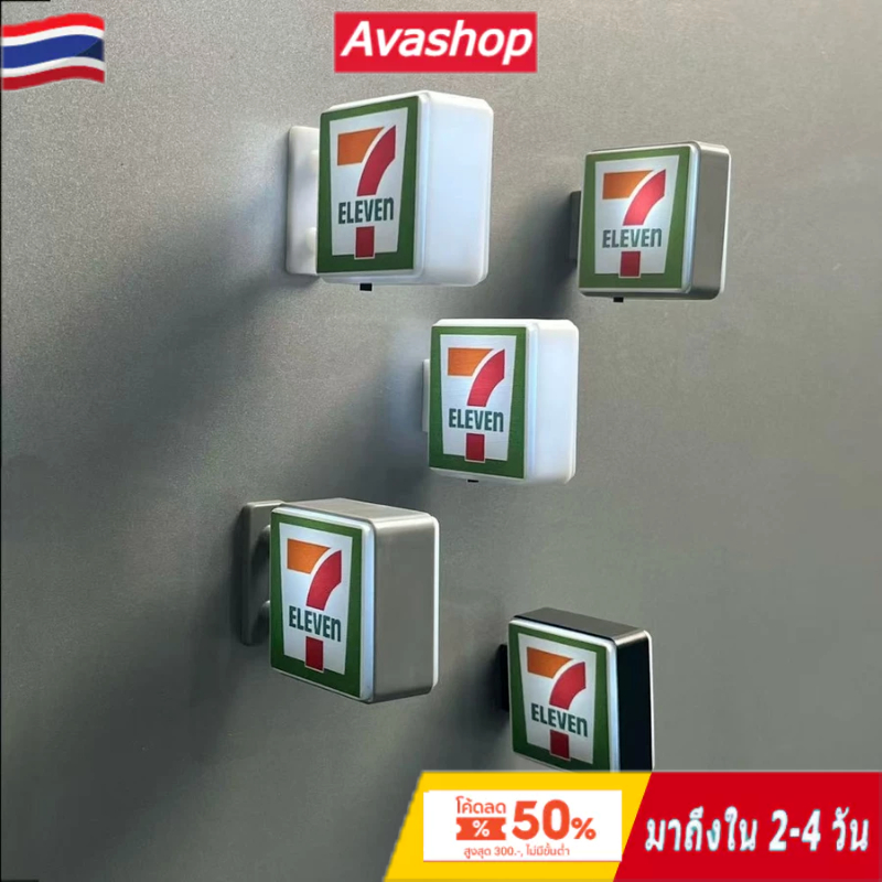 711 สติกเกอร์ตู้เย็นร้านสะดวกซื้อไฟกลางคืนครอบครัวส่องสว่างแม่เหล็กสร้างสรรค์แสงเข้าสู่ระบบแสดงป้ายรุ่นที่มีแสงตกแต่งเครื่องประดับขนา