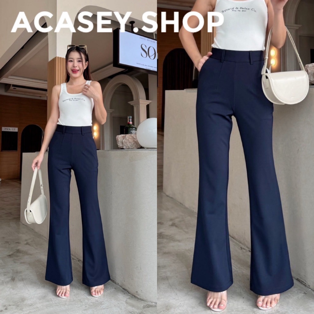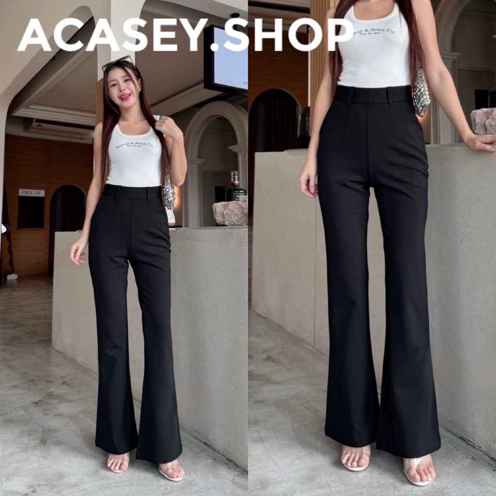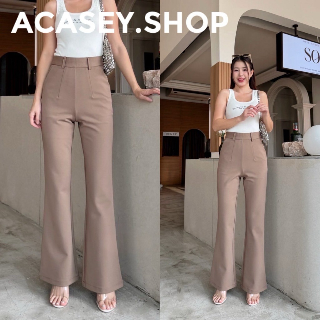 Acasey กางเกงขายาวผู้หญิง ขาม้าเอวสูง ผ้าโรเชฟซิปข้าง ใส่สบาย ขาม้าโรเชฟ Momo Pants