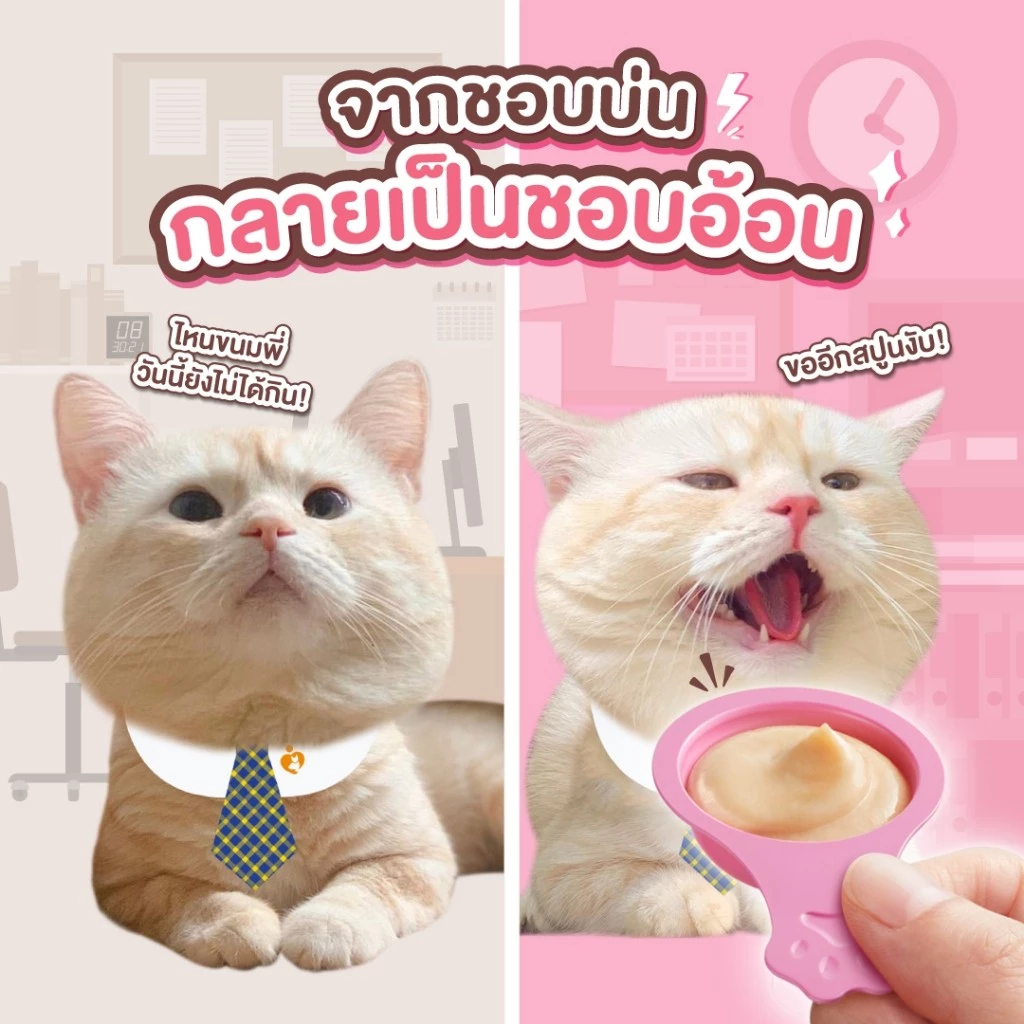 Ginno Spoon กินโนะ แคท ทรีท สปูน ขนมแมวเลีย 2 รสชาติ แบบถ้วย 1 ห่อ มี 4 ถ้วย (10g.x 4ถ้วย)
