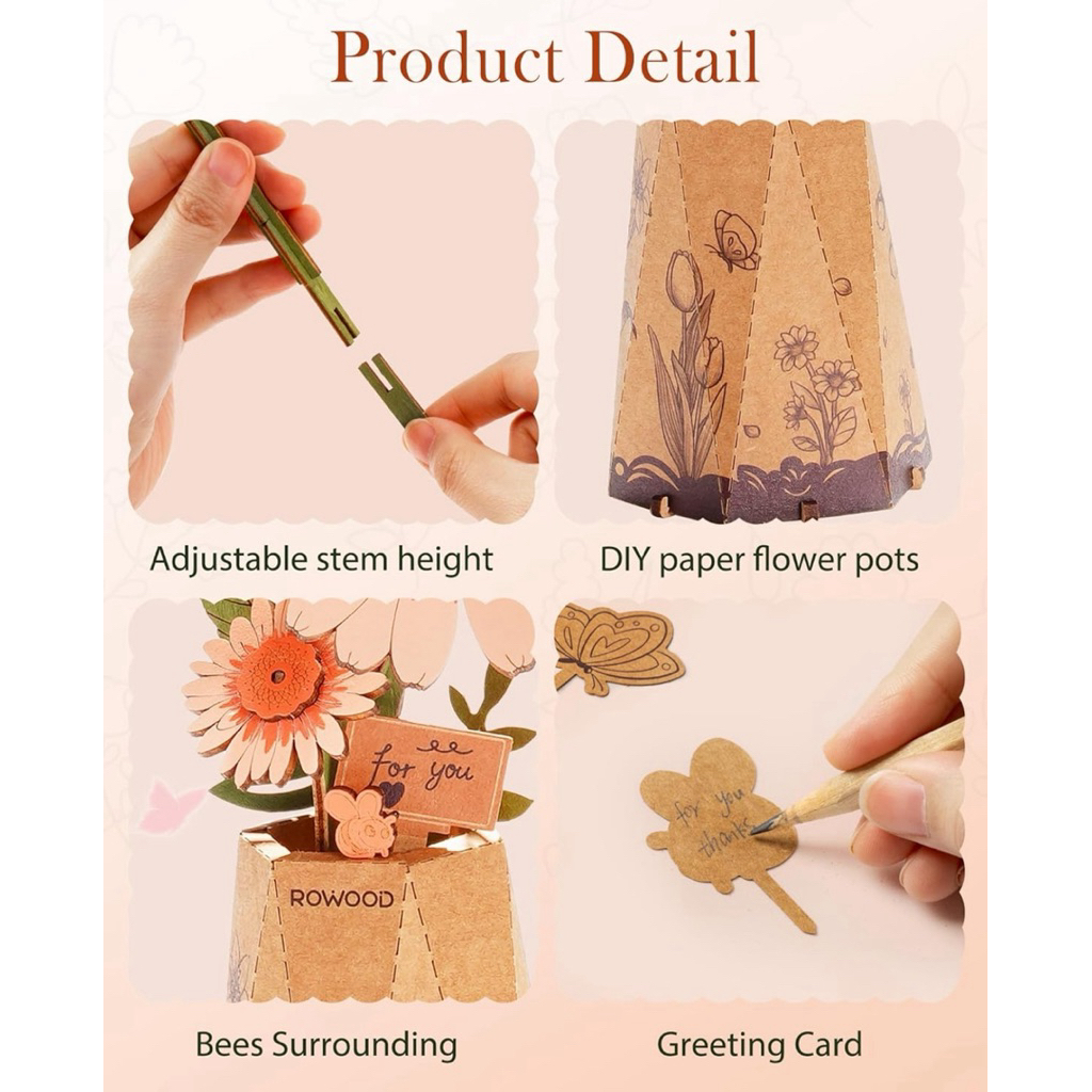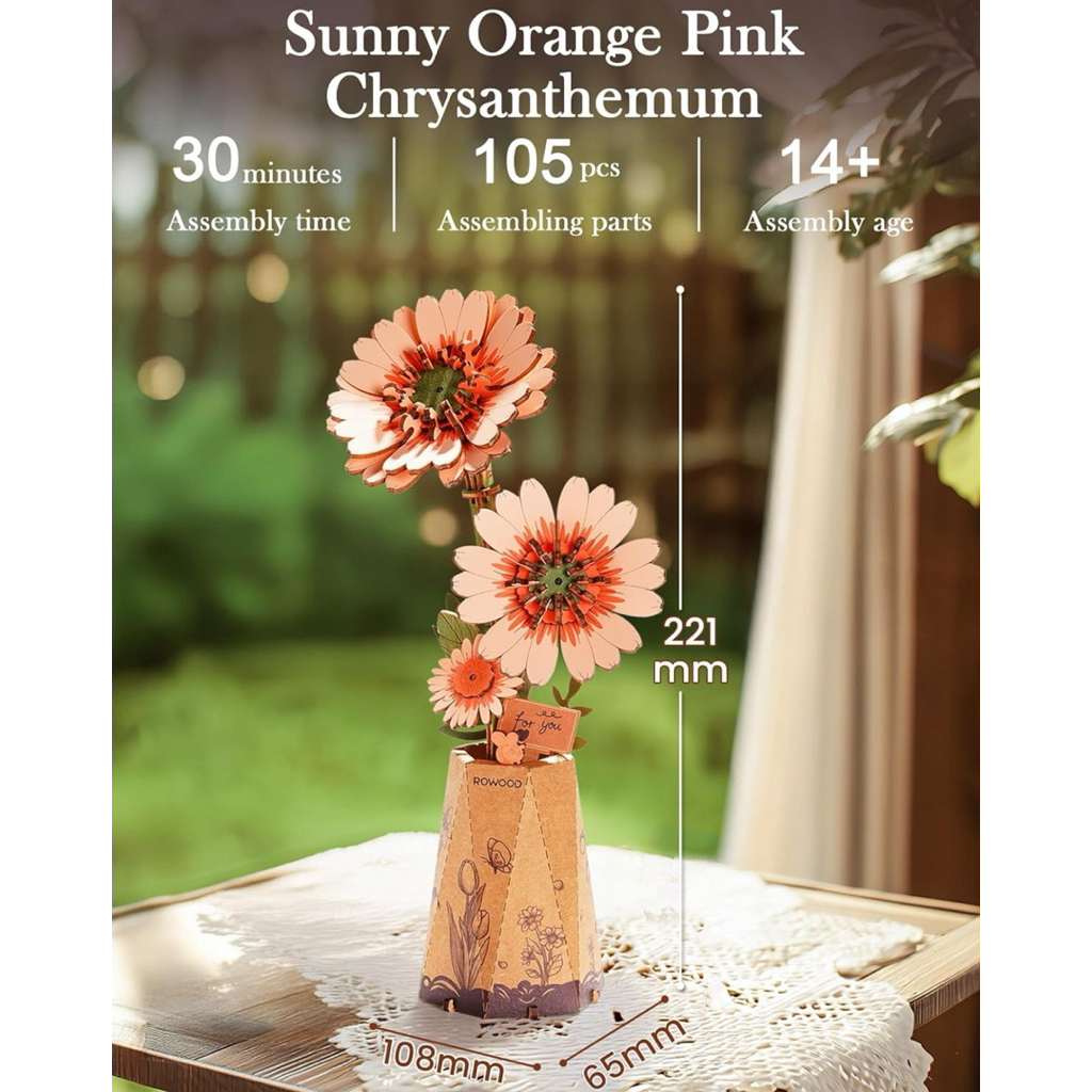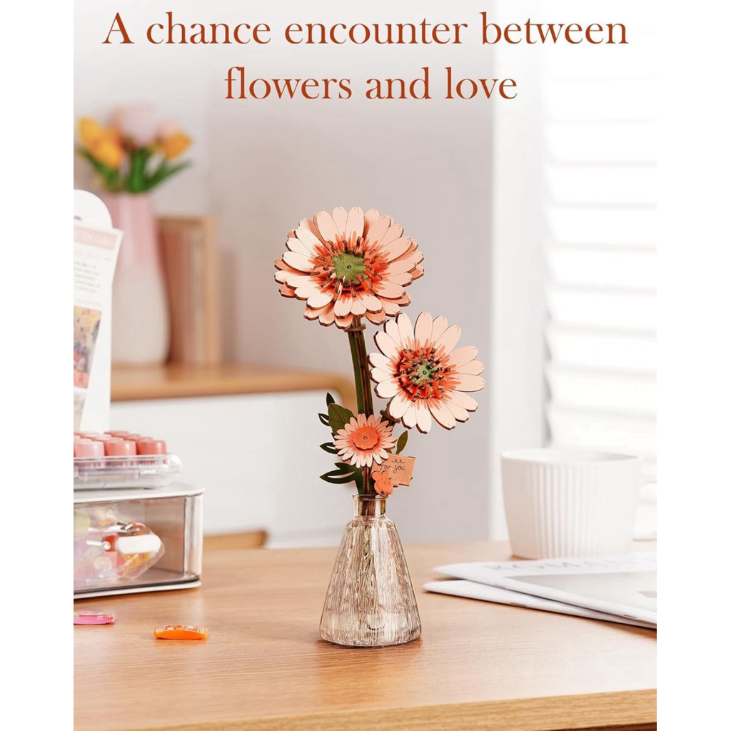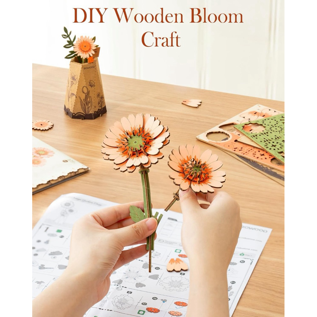 โมเดล DIY ประกอบเอง Rowood Artificial Flowers Gerbera Daisy ดอกเดซี่สีส้ม English version