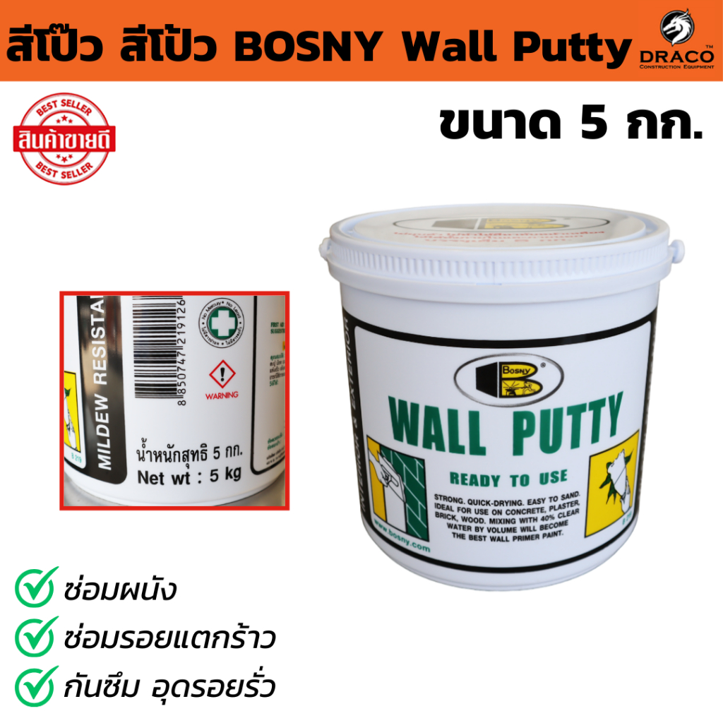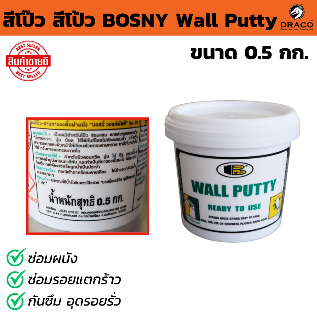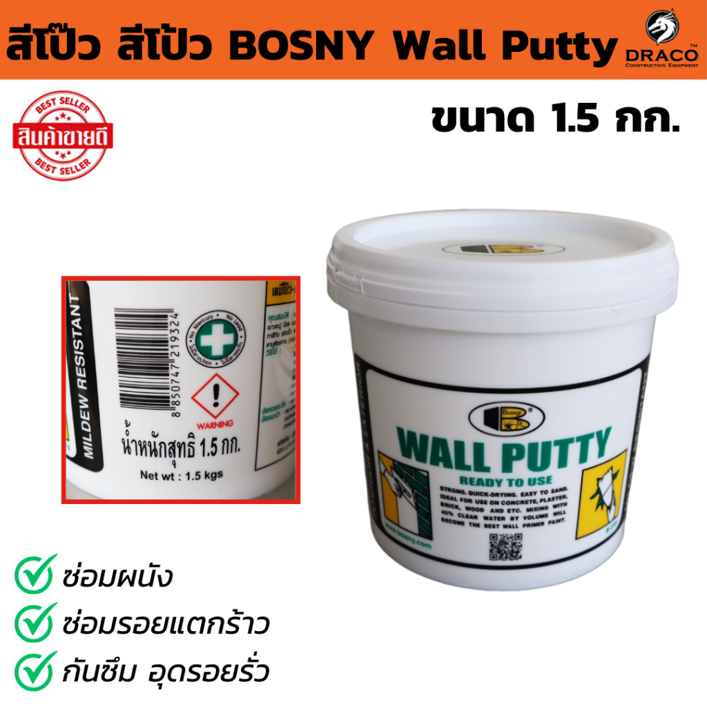 สี BOSNY Wall Putty โป๊ว สีโป้ว มีขนาดให้เลือก 0.5, 1.5 , 5 กก. ซ่อมผนัง ซ่อมรอยแตกร้าว