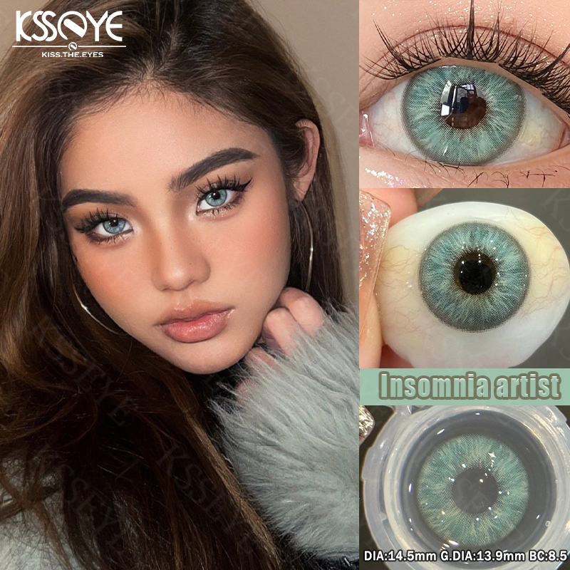 เลนส์เกรดคอนแทคเลนส์สี Ksseye 2pcs Soft Green เส้นผ่านศูนย์กลางขนาดใหญ่ 14.5 มม.คอนแทคเลนส์ 1 ปีใช้ 2024 ศิลปินนอนไม่หลับรูปแบบใหม่