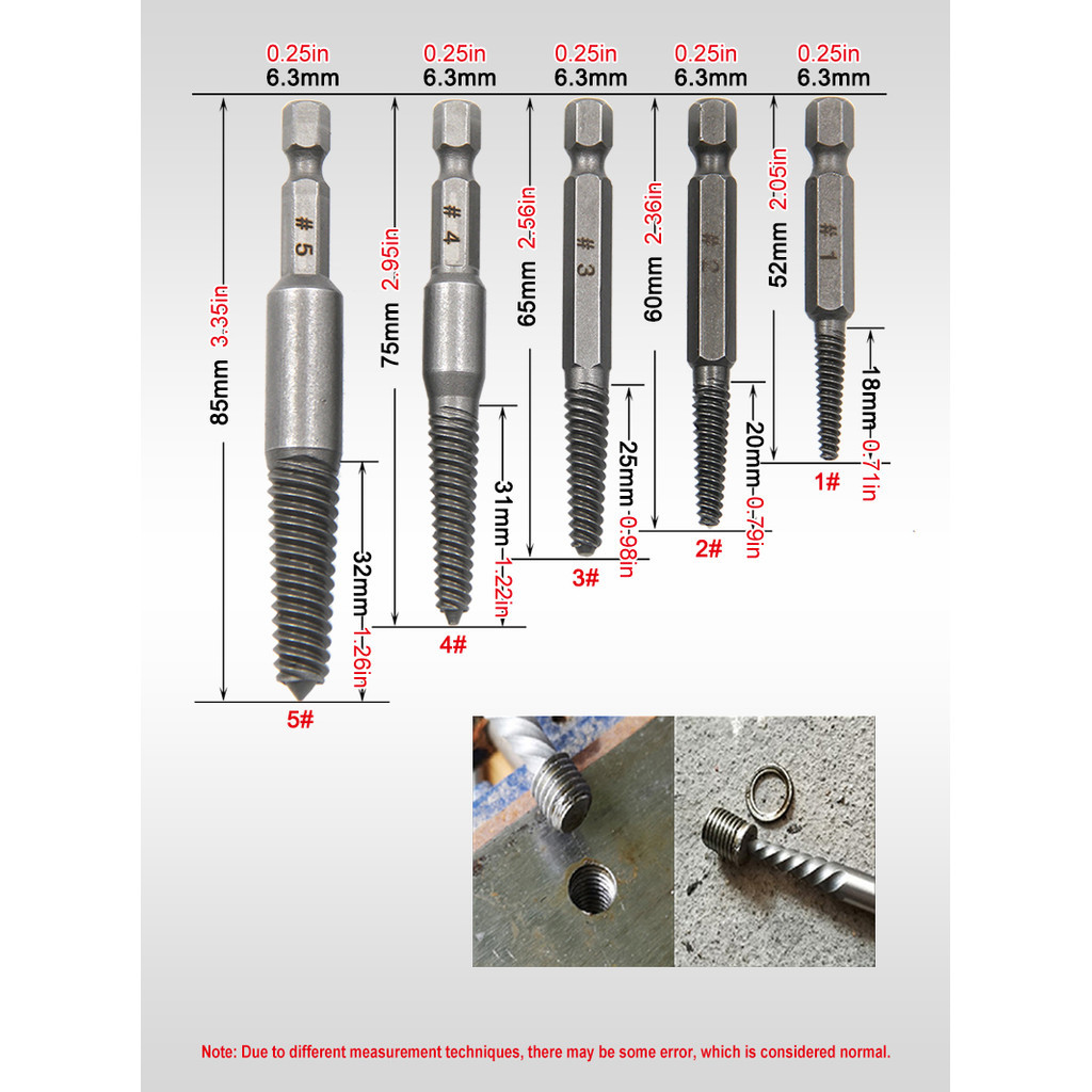 5 ชิ้น Hex Shank Broken Head Bolt Remover Kit, เครื่องมือทนทานสําหรับถอดเสียหาย, สนิม, และสกรู Stripped