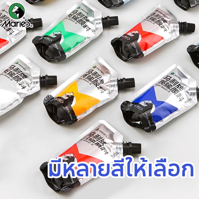 Marie สีอะคริลิค 100ml แบบถุง สีกันน้ำ ไม่จางหาย ปลอดสารพิษและไม่มีกลิ่น บรรจุแน่น สามารถใช้กับรุ่น