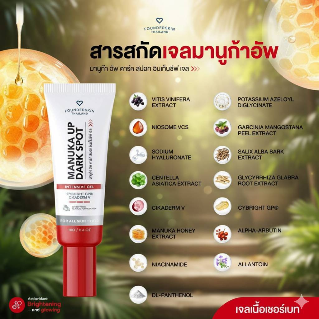 [ พร้อมส่ง ] เจลมานูก้า Manuka Dark Spot Founderskin ครีมฟาวเดอร์สกินลดเมลลานิน ใช้ได้ทั่วร่างกาย