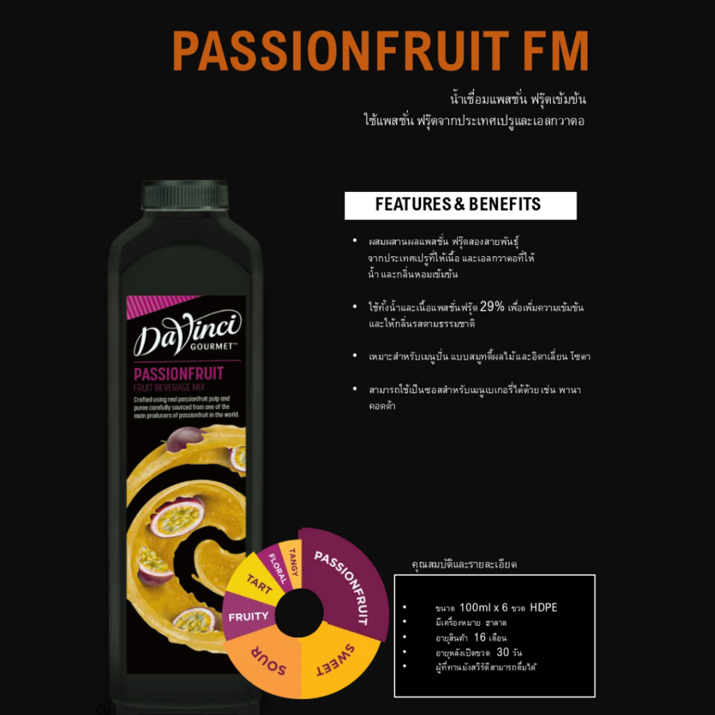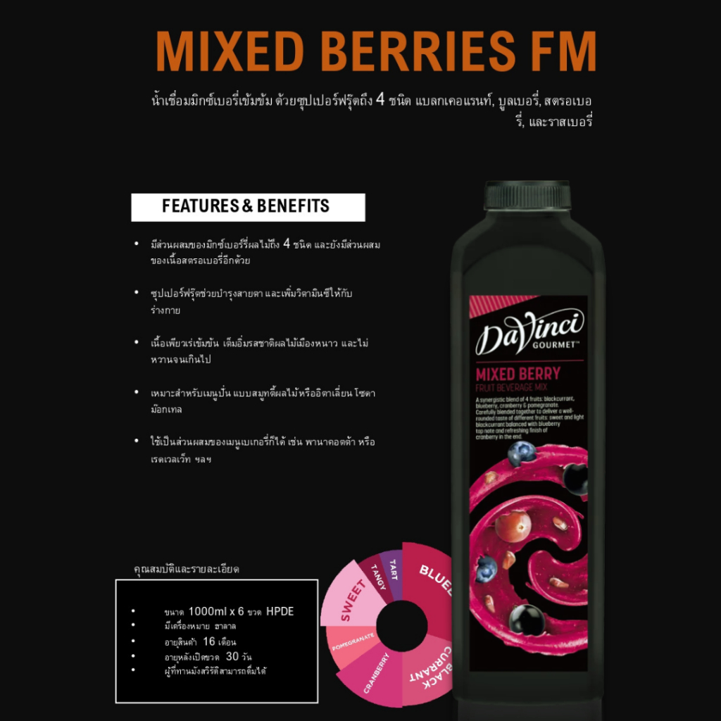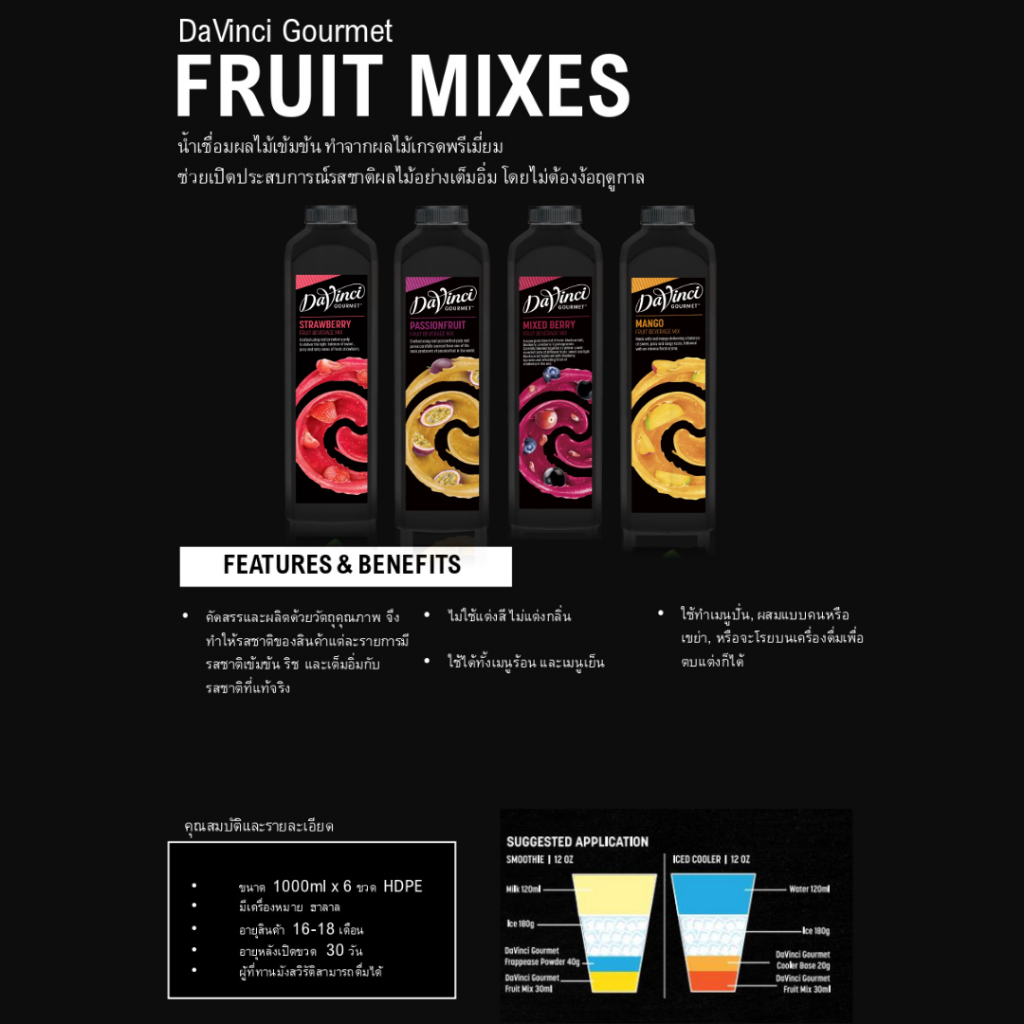 Aroma : Davinci Real Fruit Mixes น้ำผลไม้เข้มข้น ผสมเนื้อผลไม้ รสชาติผลไม้ตามธรรมชาติ (1000 ML)