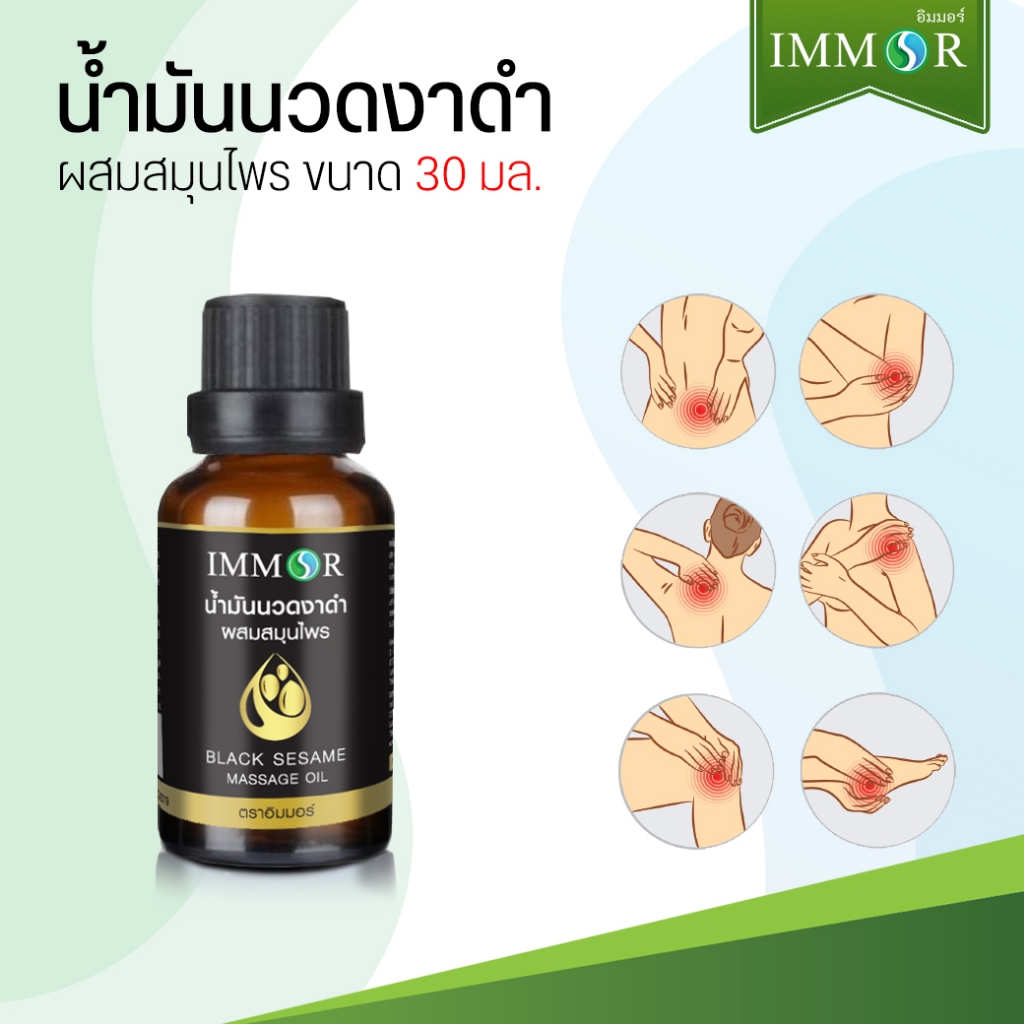 IMMOR น้ำมันนวดงาดำผสมสมุนไพร ขนาด 30 มล. (ชุด 6 ขวด)