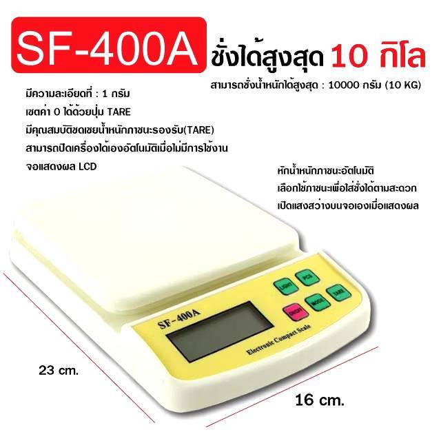 เครื่องชั่งน้ำหนักดิจิตอล แบบใส่ถ่าน รุ่น SF400A เครื่องชั่งดิจิตอล เครื่องชั่งอาหาร ชั่งได้ 10Kg/1g