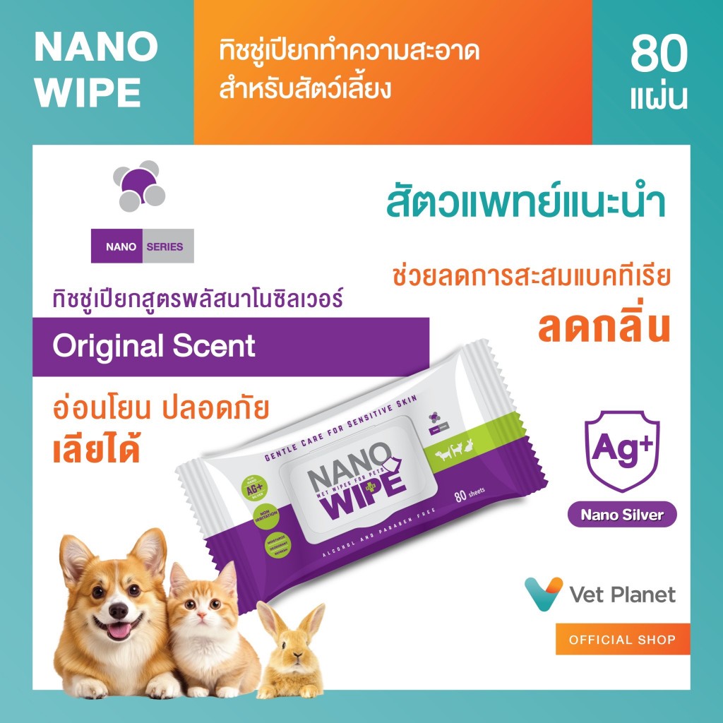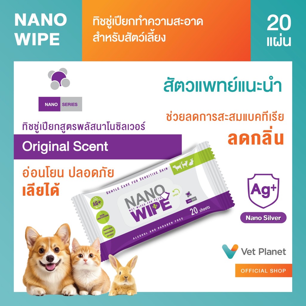 Nano Wipe ทิชชู่เปียกทำความสะอาดสัตว์เลี้ยง (กลิ่นoriginal) อ่อนโยน ไม่มีแอลกกอฮอล์และพาราเบน ลดกลิ่น พร้อมส่ง