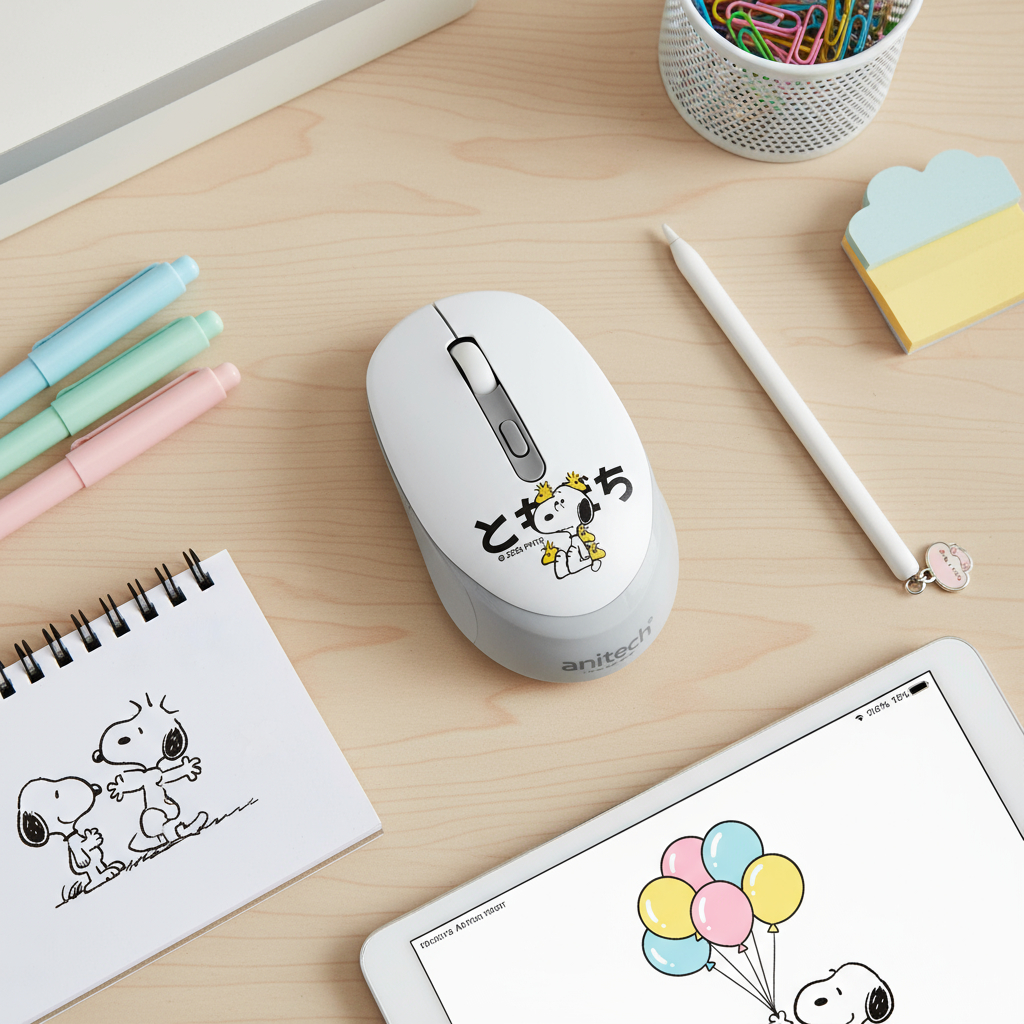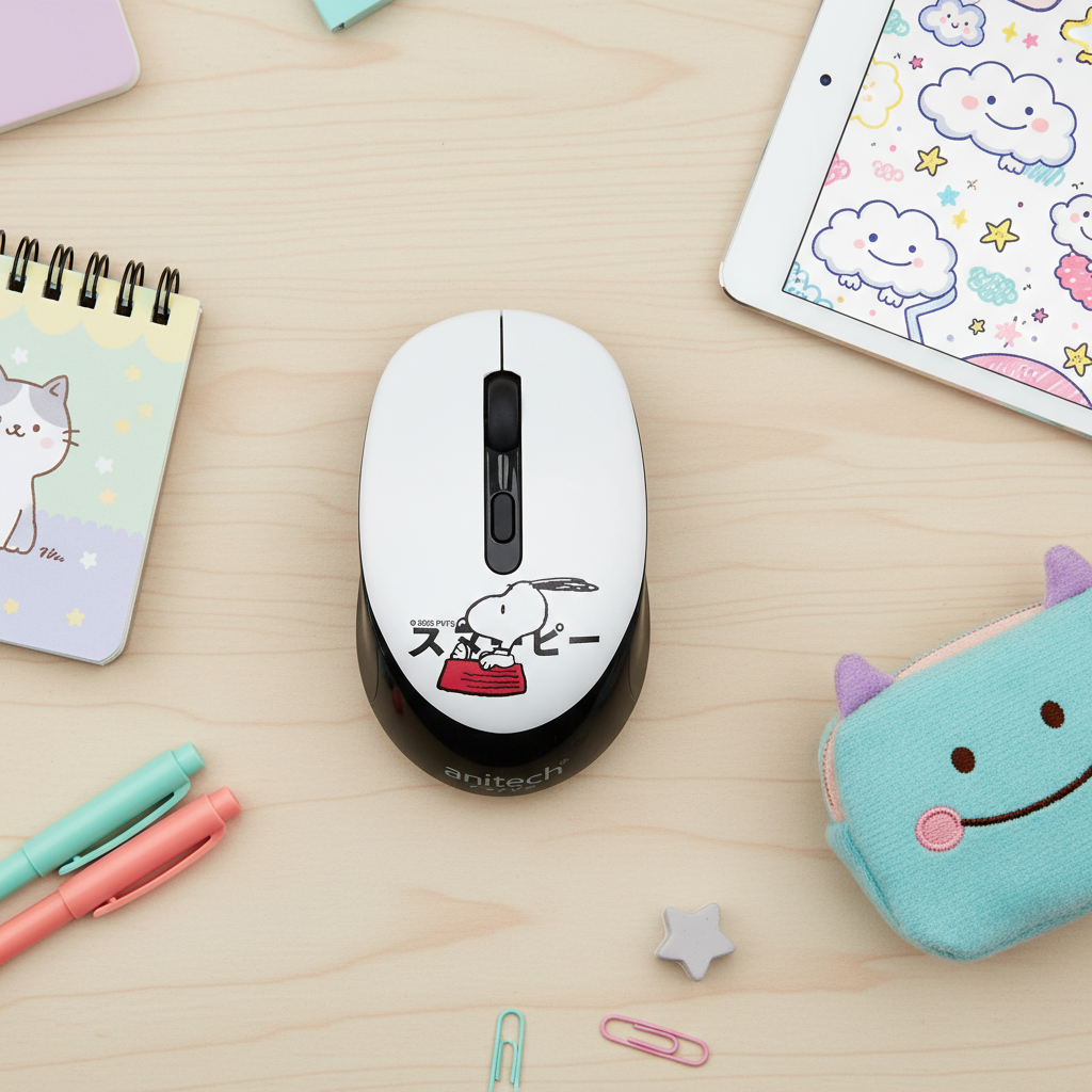 Anitech X Snoopy 3 เม้าส์ไร้สาย รุ่น SNP-W240 คลิกเงียบ เชื่อมต่อแบบ USB ปรับ DPI 3 ระดับ