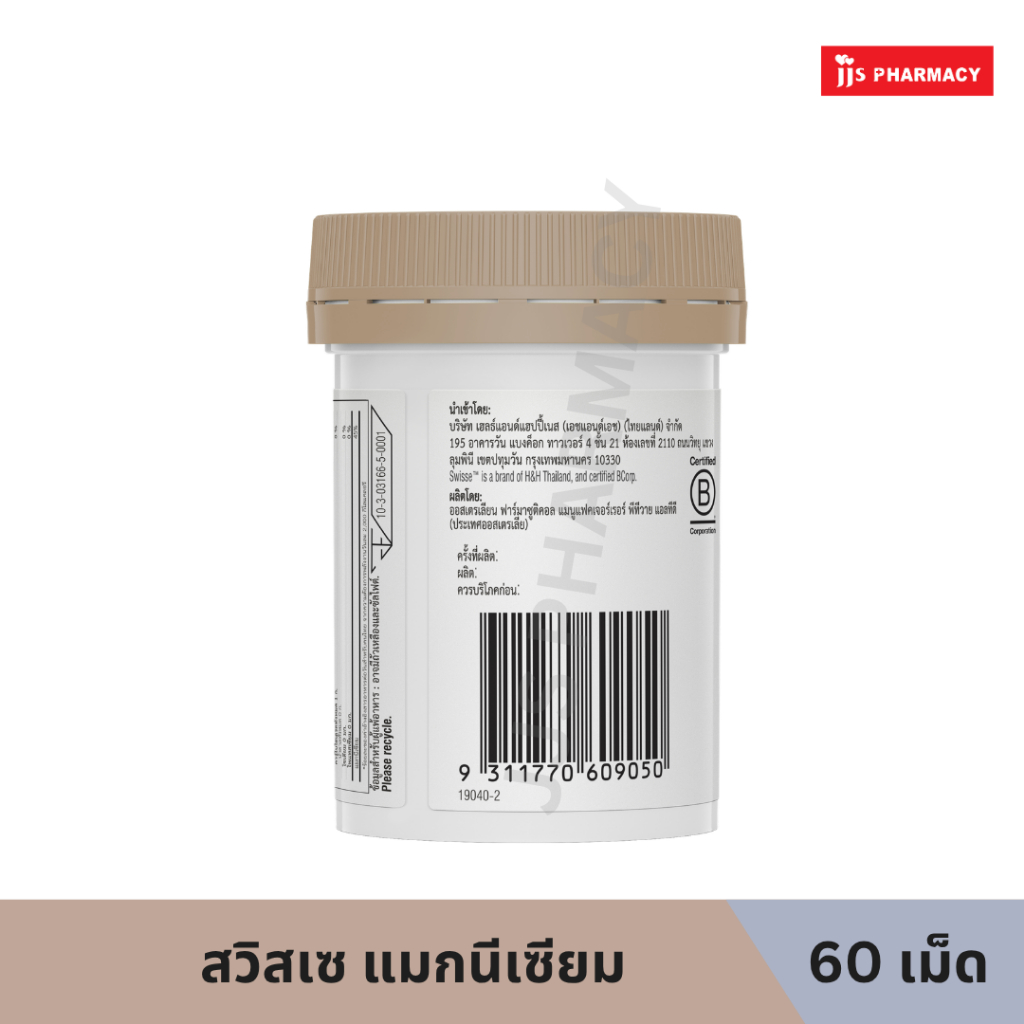 SWISSE MAGNESIUM CITRATE สวิสเซ แมกนีเซียม 60เม็ด (หมดอายุ 4/2/2029)