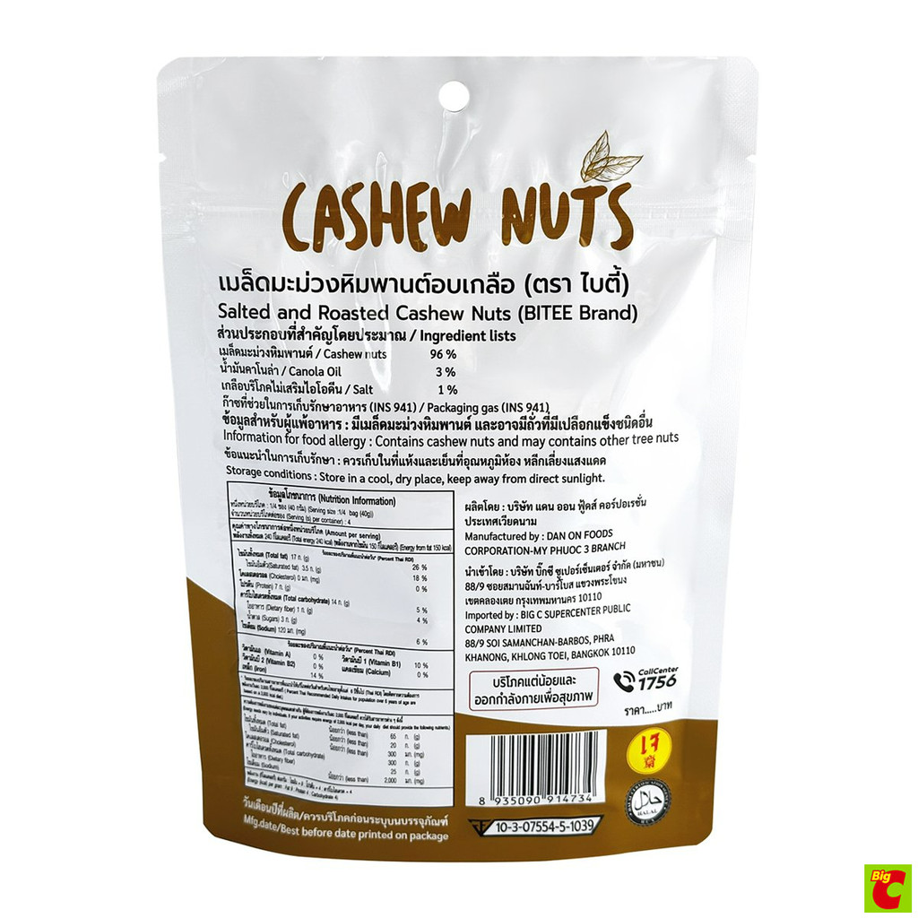 ไบตี้ เมล็ดมะม่วงหิมพานต์อบเกลือ 160 ก.