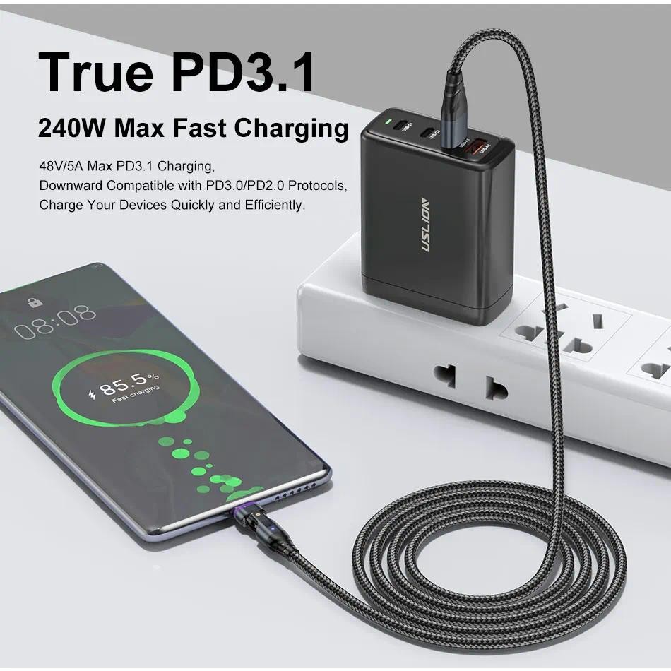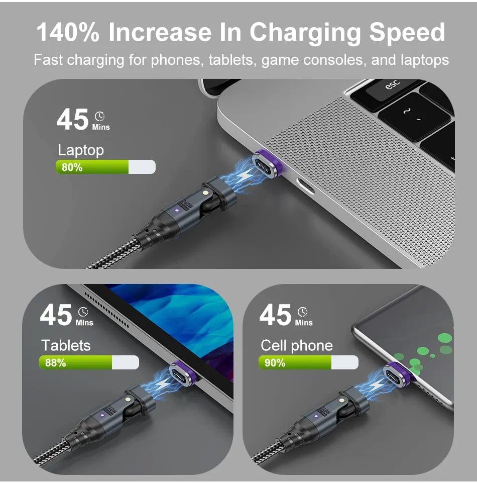 Fonken 2 in 1 PD240W USB-A Type-C สายชาร์จแม่เหล็กเป็น Micro Type-C iOS 180° สายเคเบิลข้อมูลแบบหมุนได้สําหรับแท็บเล็ตโทรศัพท์