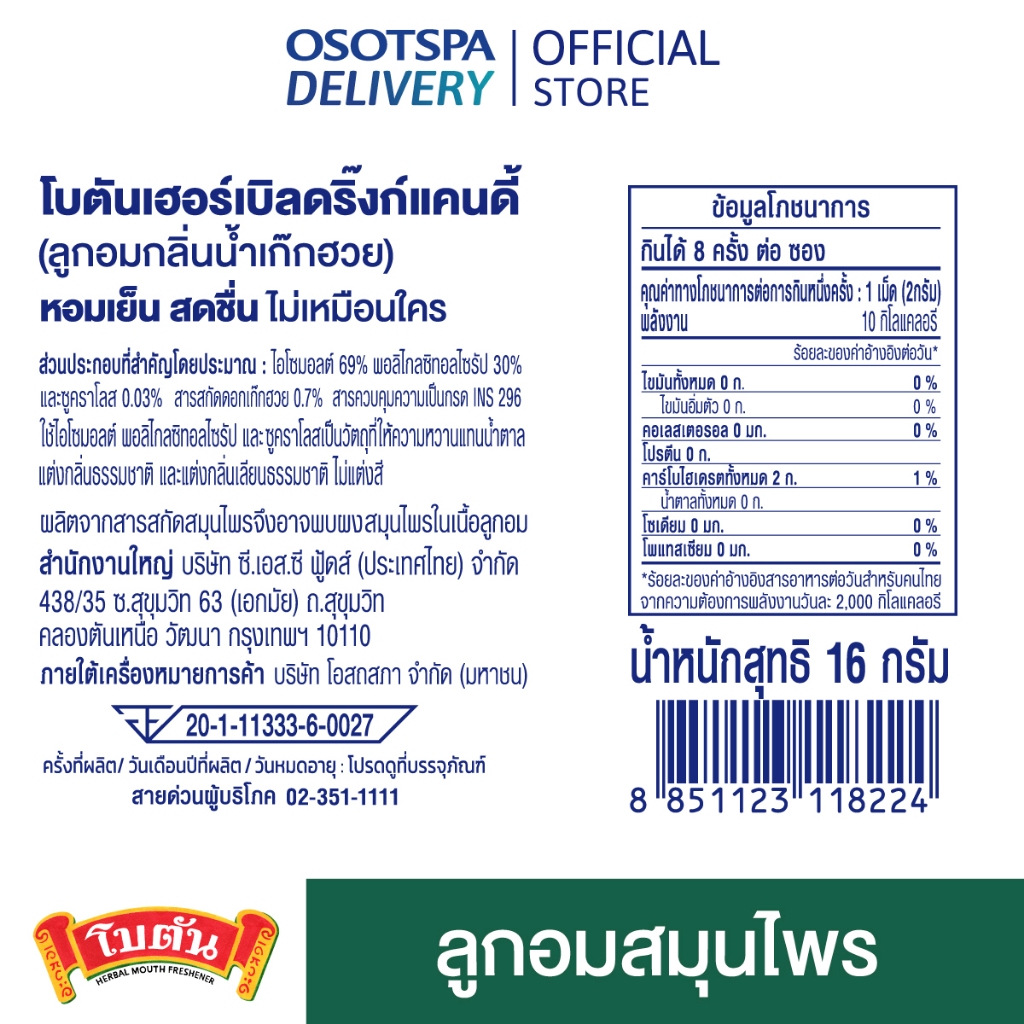 BOTAN CANDY CHRYSANTHEMUM 8T 16G / Botan โบตัน ลูกอมรสเก๊กฮวย 8เม็ด 16 กรัม - เลือกแพ็คด้านใน